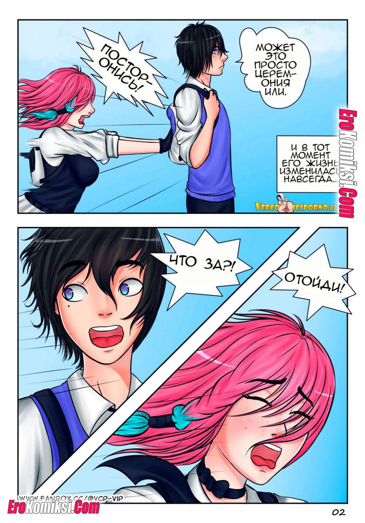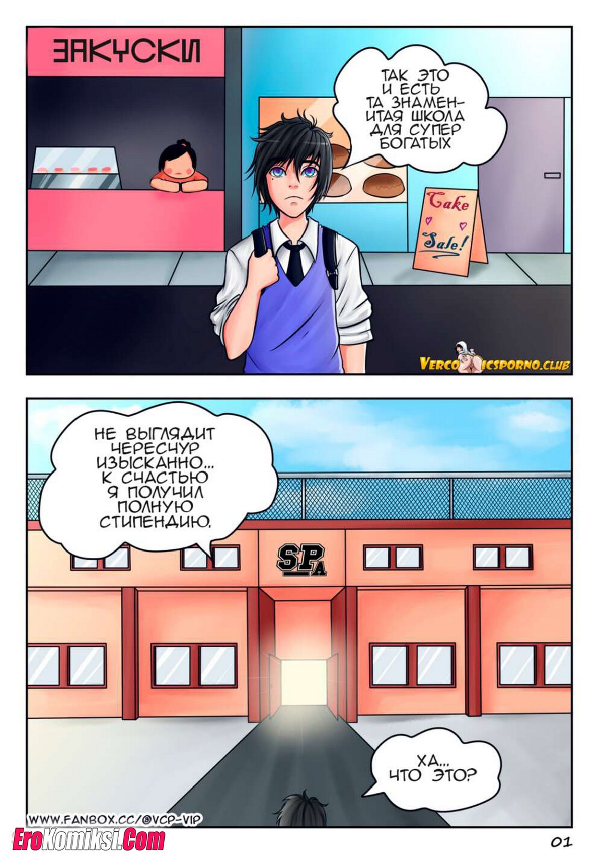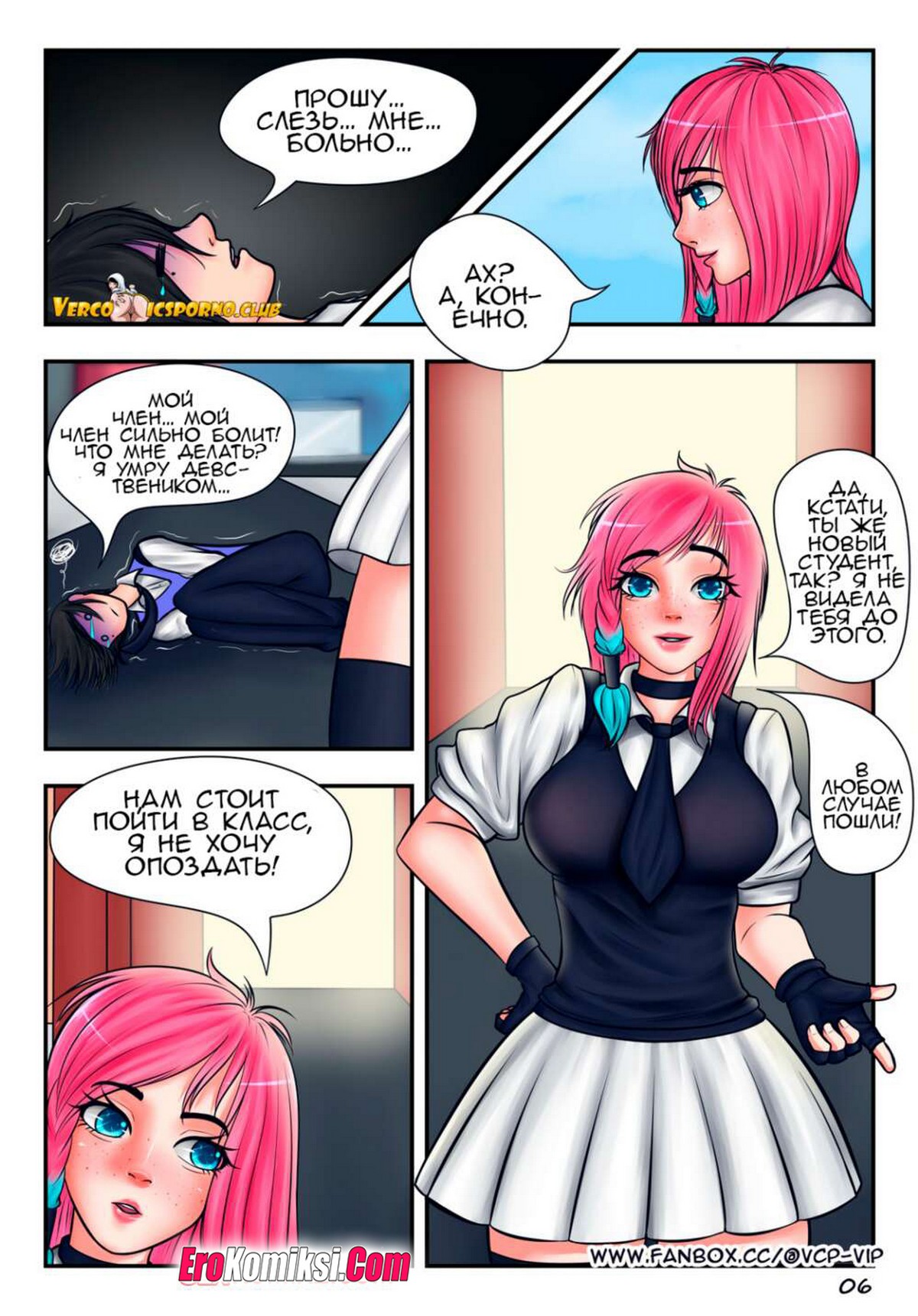 Порно комикс Академия секс очков. Парень хотел поебаться, поэтому снял горячую красотку с большими сиськами. Она встала перед ним на колени и стала отсасывать его большой хуй, а затем дала ему себя хорошенько выебать и кончить ей на лицо.
