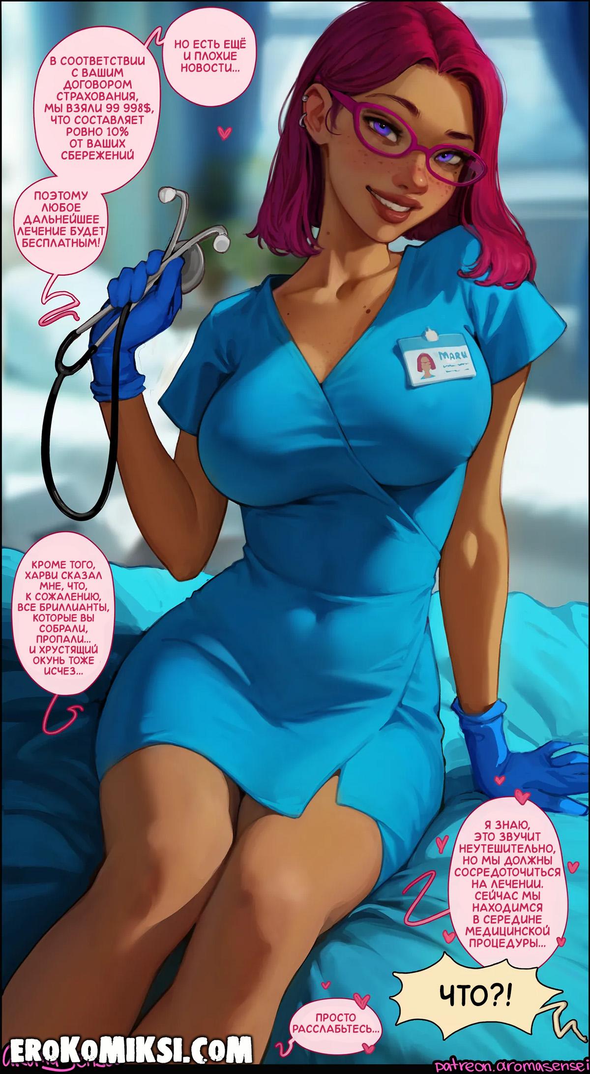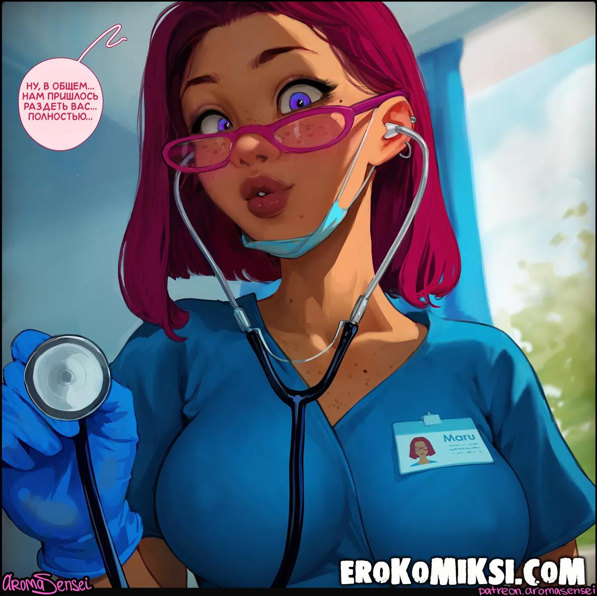 Порно комикс Альтернативное лечение. Aroma Sensei. В клинику поступает пациент в коме, и доктор Мару принимается за лечение. Несмотря на то, что пациент был в коме, Мару заметила у него сильный стояк, и Мару решила применить альтернативный метод лечения. Девушка взяла член в рот и от этого пациент вышел из комы, и поняв, что её метод работает, Мару решила оседлать член паренька, чтобы полностью его исцелить…