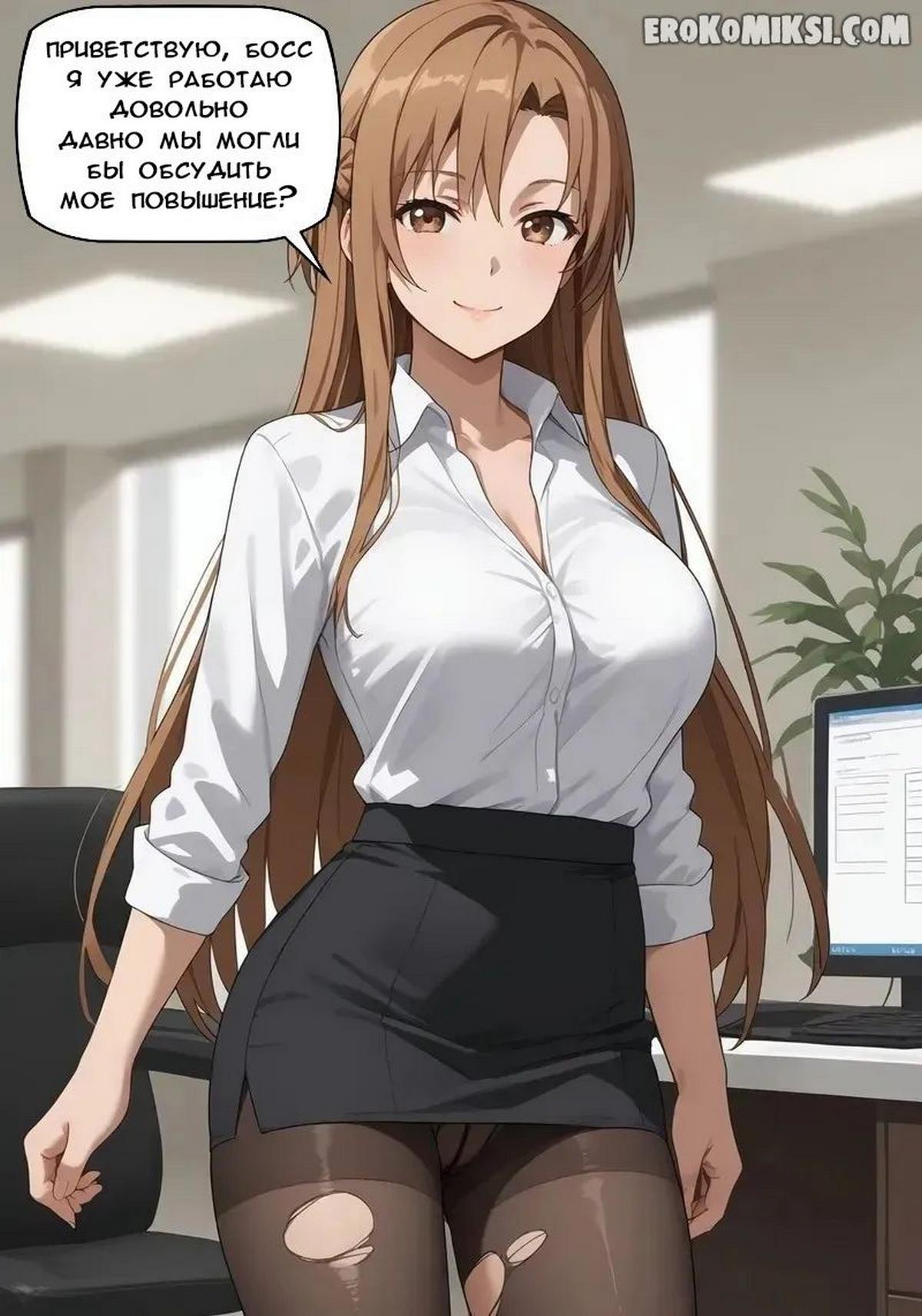 Порно комикс Асуна-ваша секретарша и она хочет повышения. Сексуальная брюнетка в короткой юбке пришла в кабинет своего босса, чтобы попросить повышения зарплаты. Красотка встала на колени и отсосала у парня, а потом позволила ему трахнуть себя в киску и кончить внутрь…
