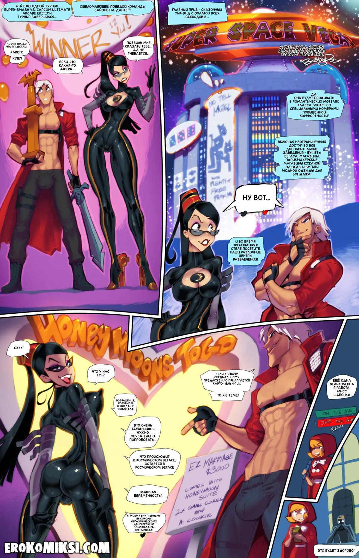 Порно комикс Bayonetta & Devil May Cry. Медовый месяц в Вегасе. Байонетта и Данте отправились в Вегас на медовый месяц, и заселились в отель для молодоженов, но не в простой номер, а номер для извращенцев, как раз то, что им обоим по душе, и теперь, ребята смогут воплотить в жизнь свои самые грязные сексуальные желания.