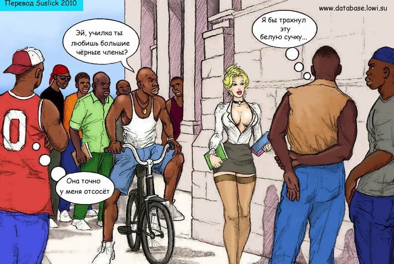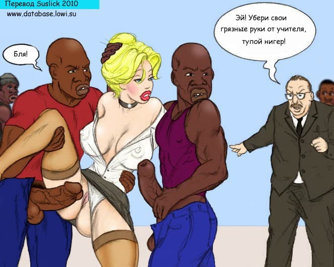 В этом порнокомиксе с училкой мы познакомимся со знойной зрелой преподавательницей, которая очень любит большие черные члены своих молодых учеников. А тем только того и надо, драть взрослую женщину во все ее сладкие дырочки.