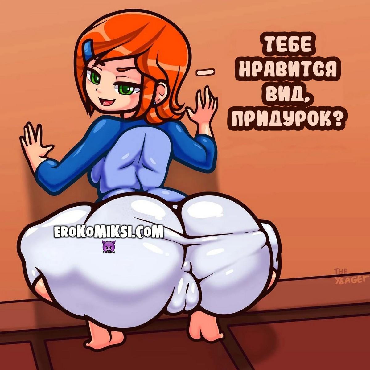 Порно комикс Бен 10. Гвен анал. Бен 10 уже вырос и готов отодрать все узкие дырочки Гвен своим огромным членом, засунув свой член в гигантскую задницу Гвен через штаны…