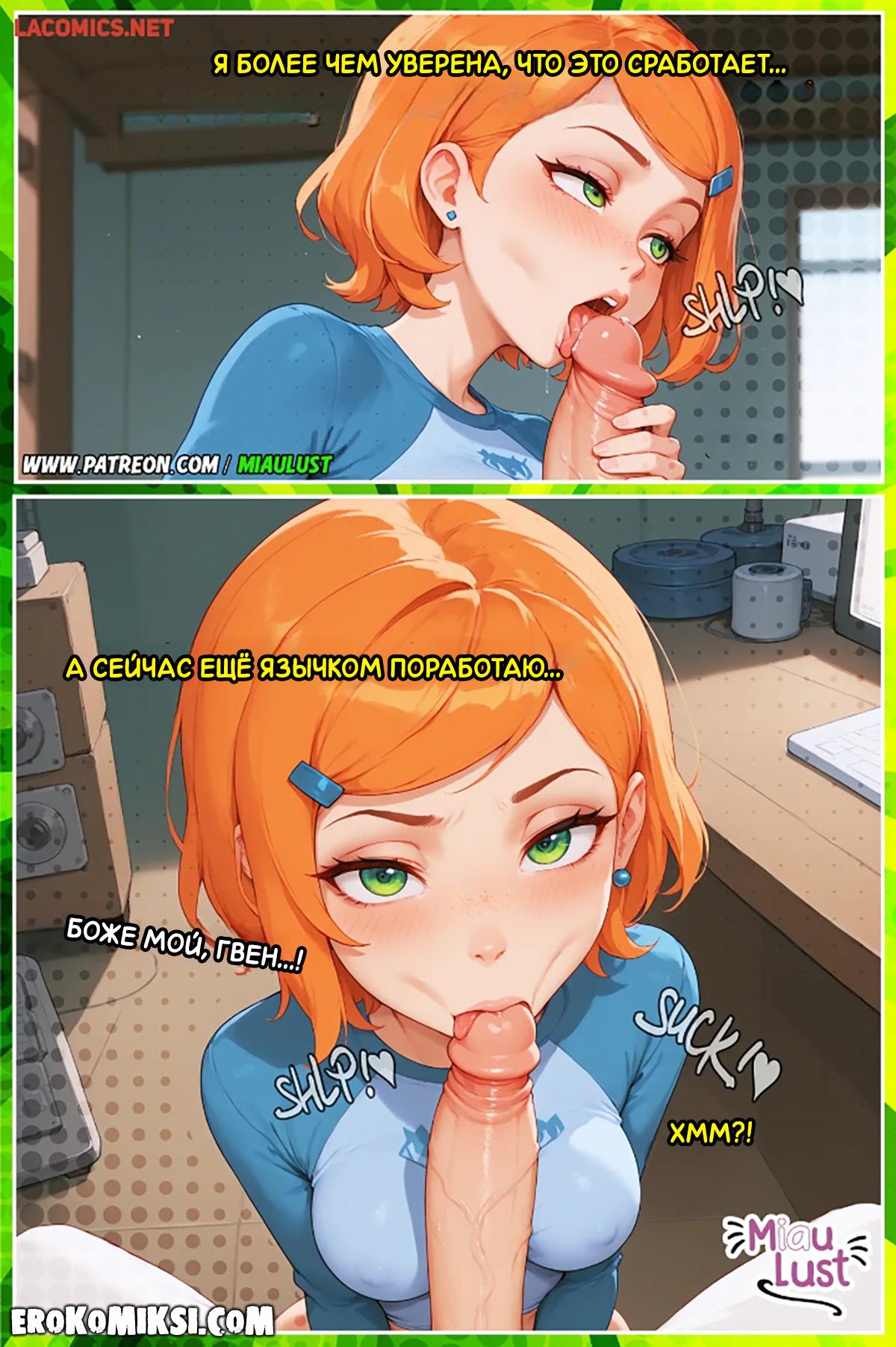 Порно комикс Бен 10. Первая помощь. Бен заразился ядом, и Гвен решается ему помочь, высосав этот яд. Она опускается на колени, оголяет свои большие сиськи и принимается отсасывать брату…