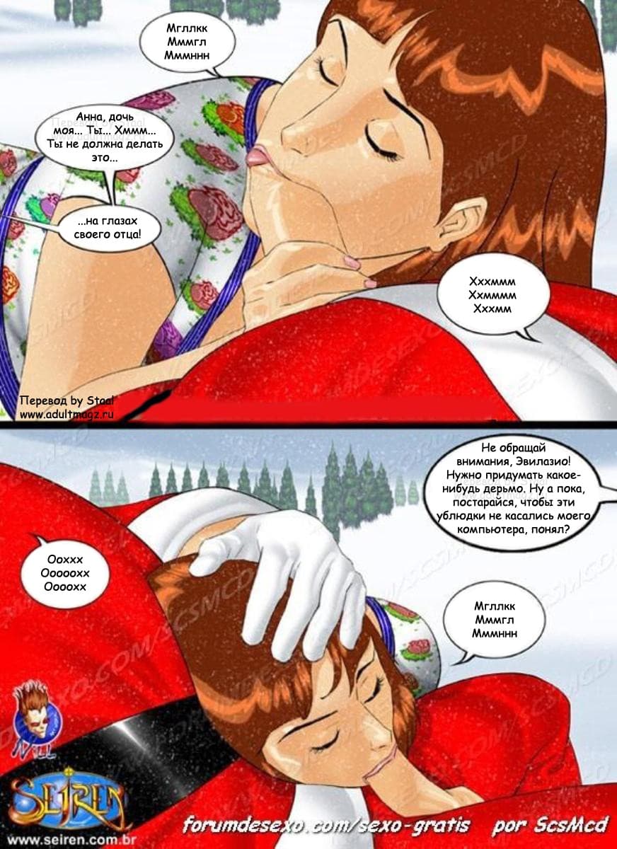 Порно комикс Моя тётя. Часть 24. Без цензуры!!! Внезапно появившаяся девушка, прерывает разговор Сары, Лауры и...