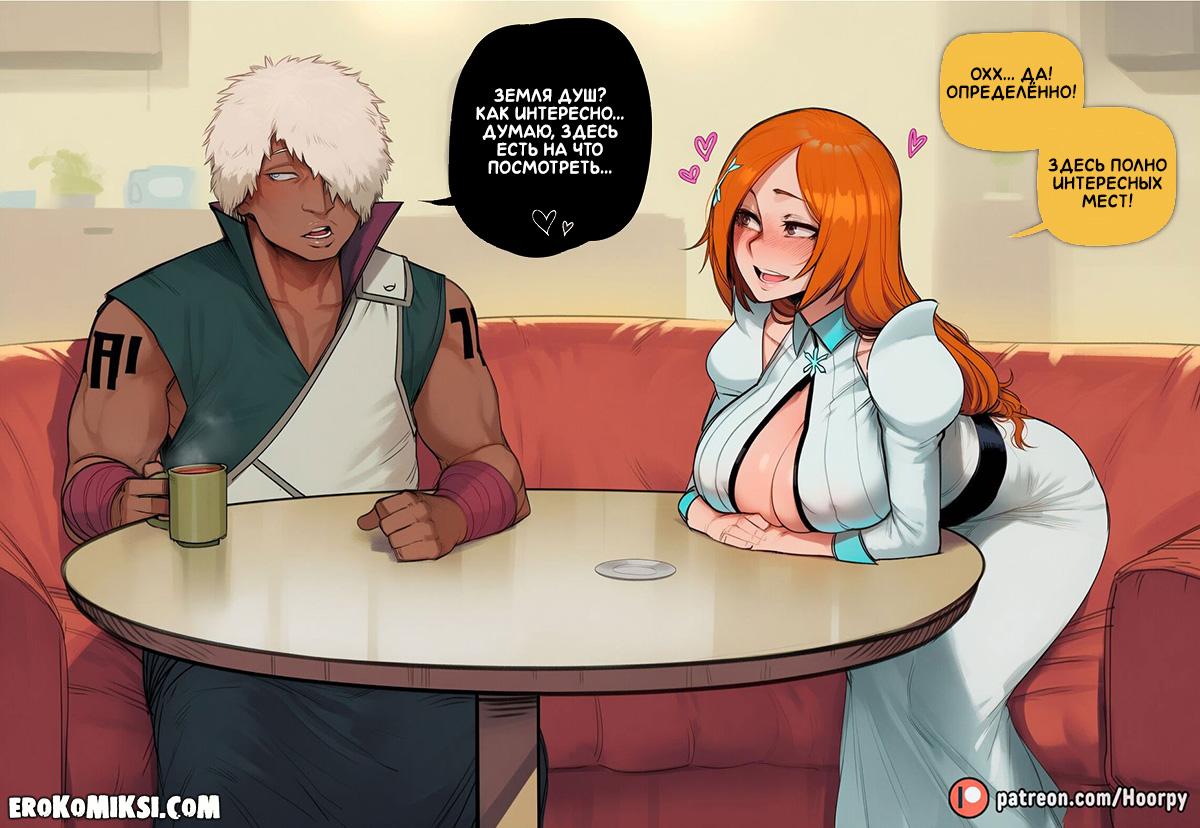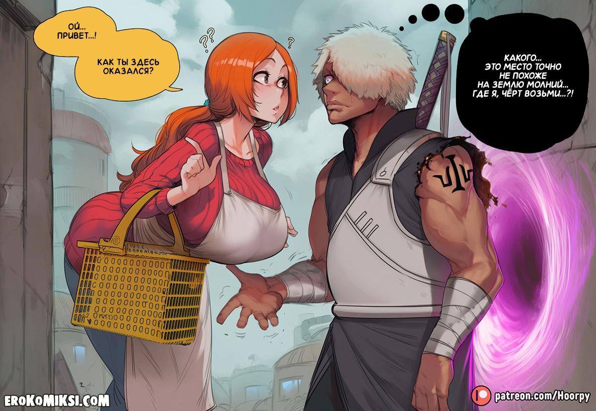 Порно комикс Bleach. Путешествие между мирами. Даруи путешествует между мирами в поисках земли Молний, но постоянно попадает в миры, где живёт Орихиме, у которой уже давно не было мужика, и она с радостью даёт путешественнику как следует оттрахать свои тугие дырочки…