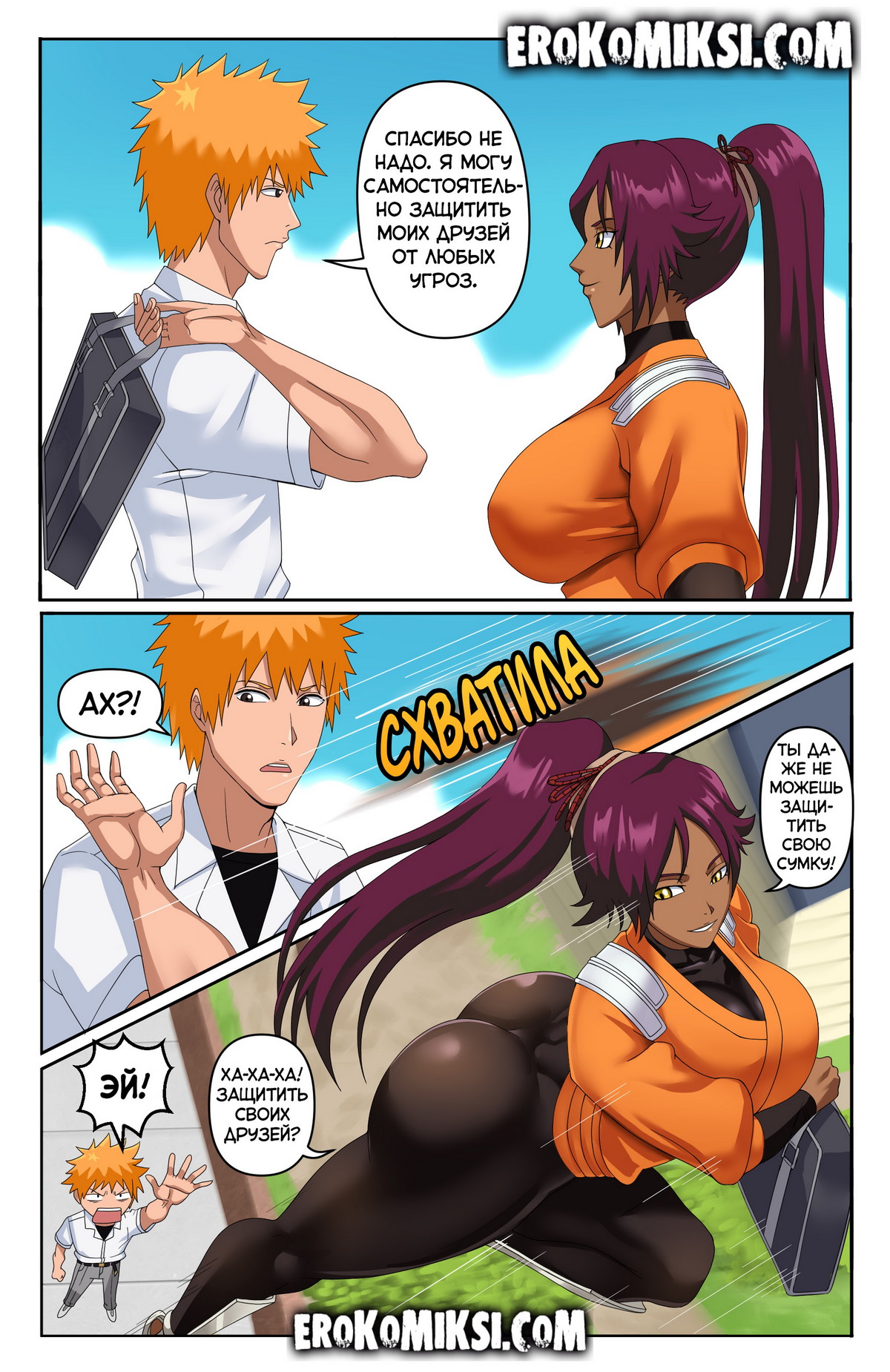 Порно комикс Блич. Йоруичи. Йоруичи поручили усилить Ичиго, чтобы Юноша смог стать ещё сильнее. Но он не хотел ни в какую с ней связываться и тогда девушка решила использовать другой подход…