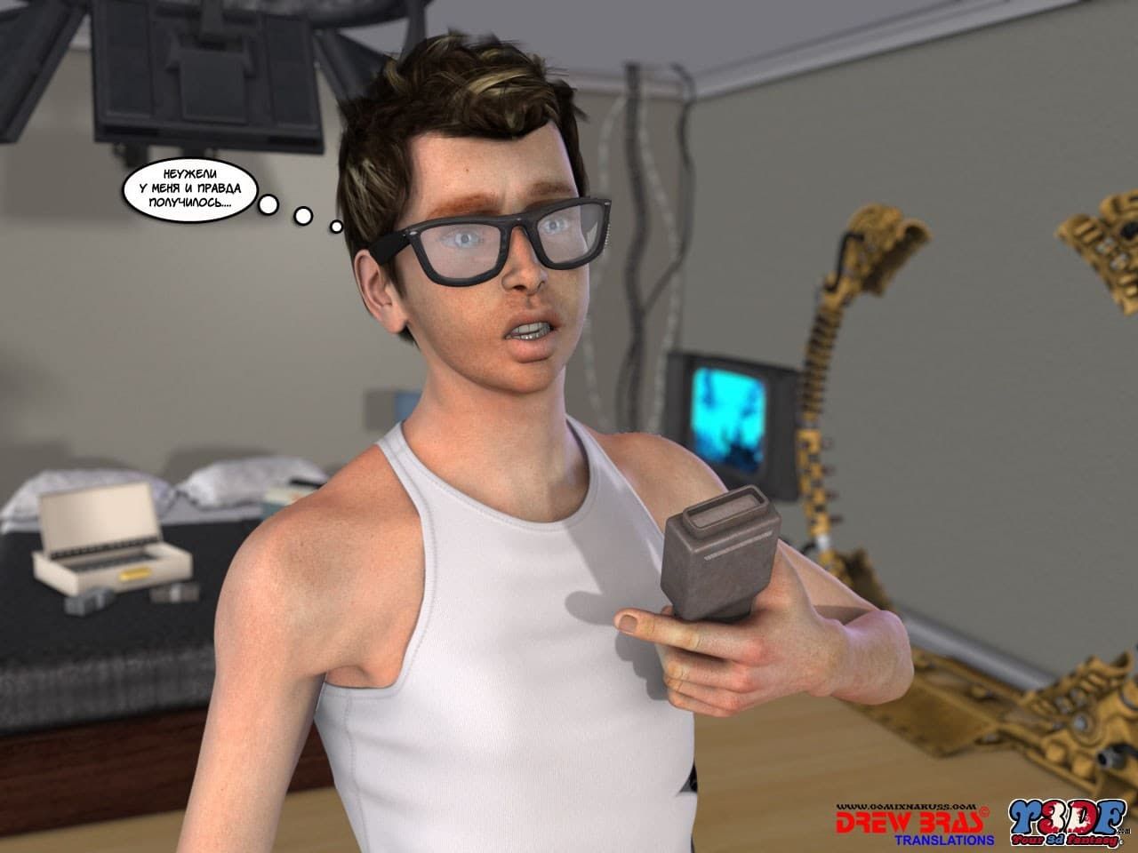 Перед вами порно комикс 3д, из которого вы узнаете, как один парень смог сотворить прибор, воздействующий на сознание людей. Достаточно было направить его на объект и приказать, что тому необходимо было исполнить. Ну, как вы понимаете, такую машинку стали использовать в достижении особых, похотливых желаниях, чтобы удовлетворить необузданное возбуждение.