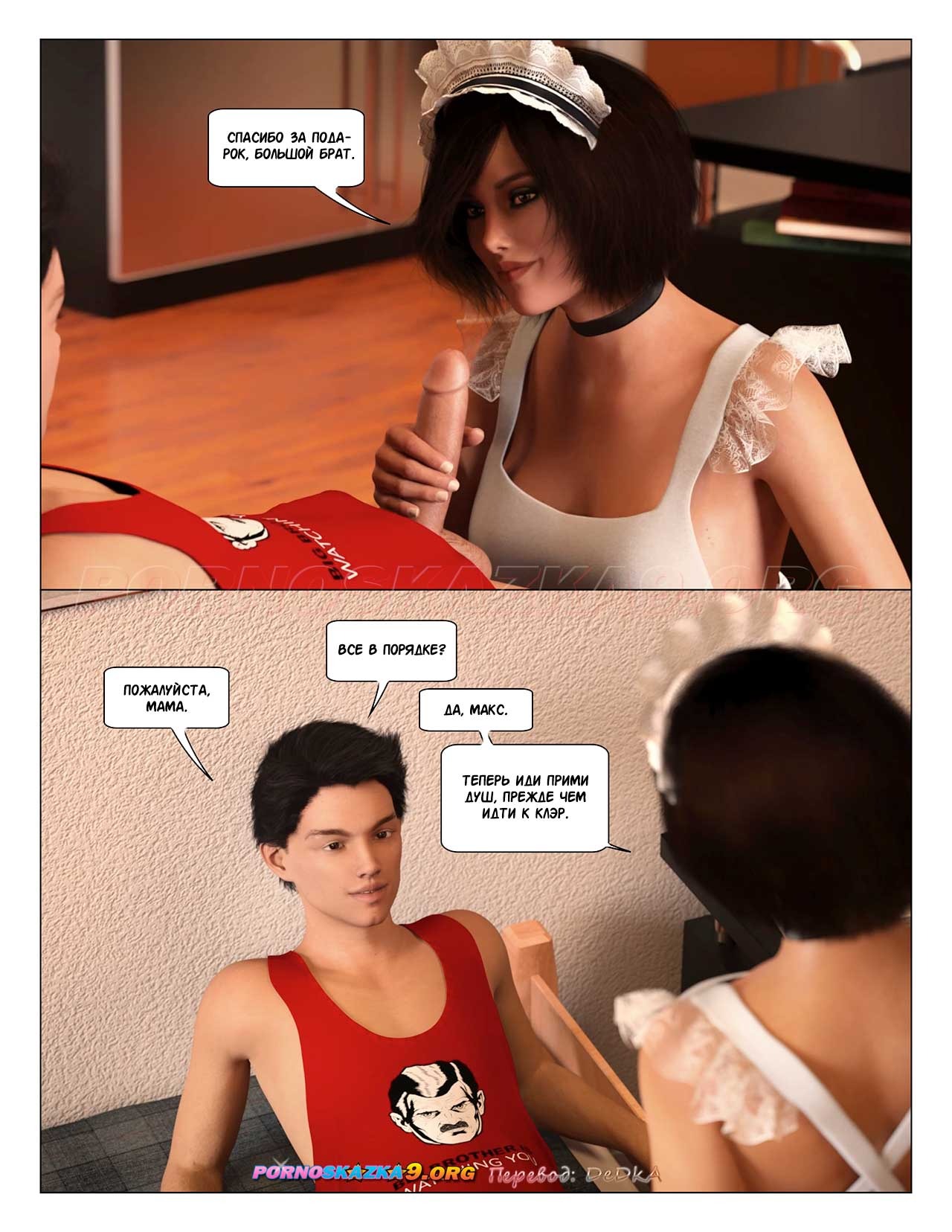 Порно комикс Большой брат. Часть 52. Утром Анна сказала Максу, что его ждут в ковене Клэр, где он может, если захочет, остаться на всю ночь, и на этот раз Анна разрешила Максу все виды обслуживания ведьм ковена Клэр. А позже, уже в доме Клэр , Максу было разрешено то, чего он и сам не ожидал…