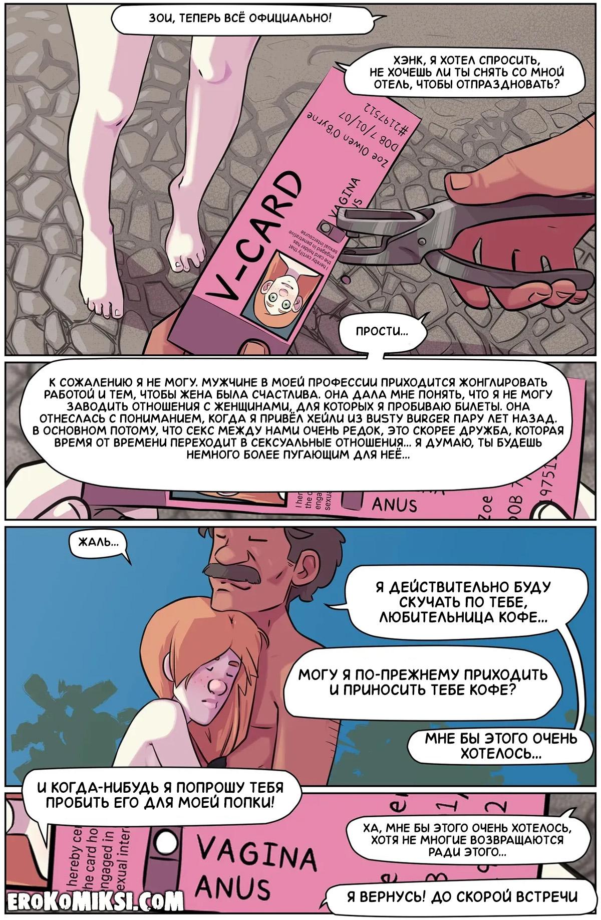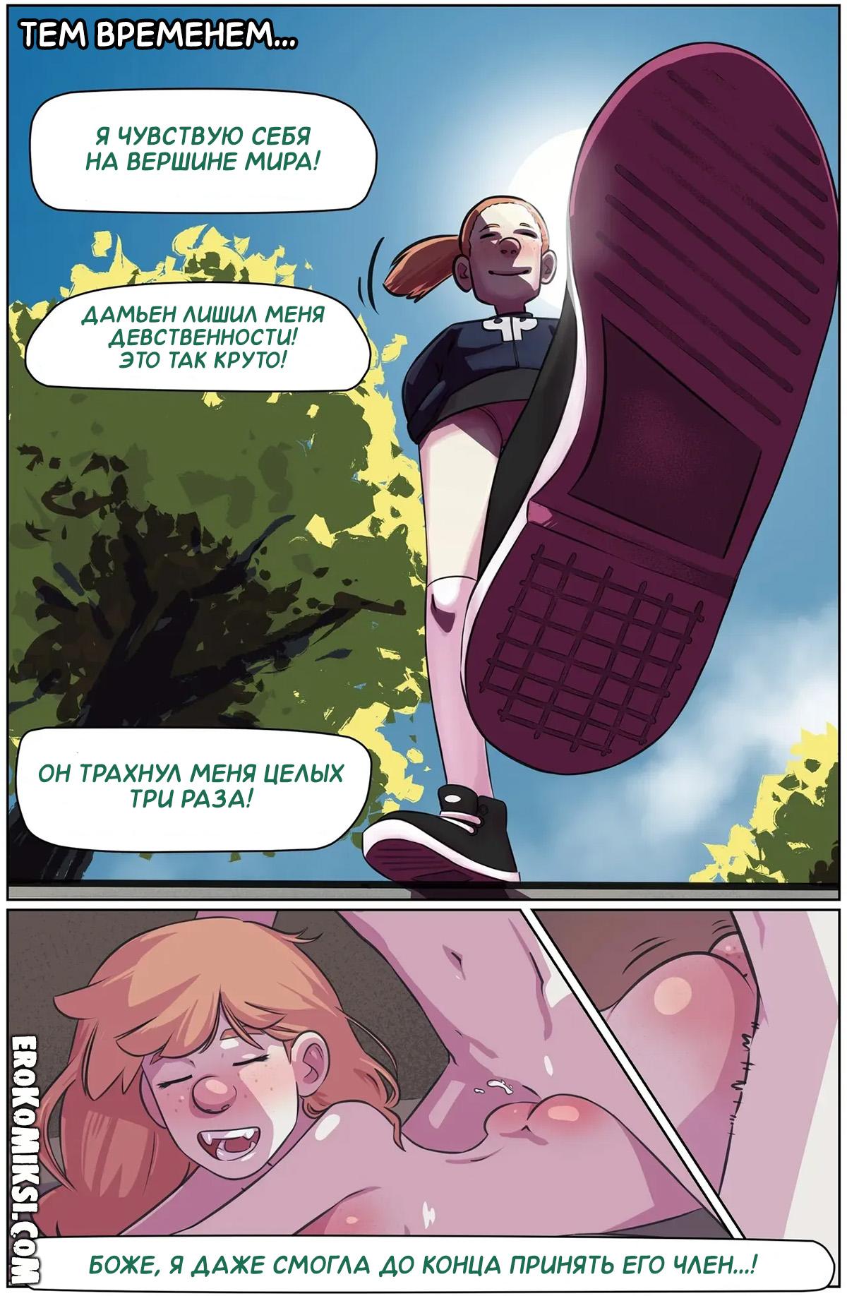Порно комикс Большой день Зои. Зои наконец-то потеряла девственность со своим любимым парнем, Дамьеном, и теперь, ей нужно получить печать об этом событии у смотрящего, с которым она уже давно хотела трахнуться. Тем временем, Дамьен остаётся с мамой Зои Эбигейл, которая давно положила глаз на парня дочери…