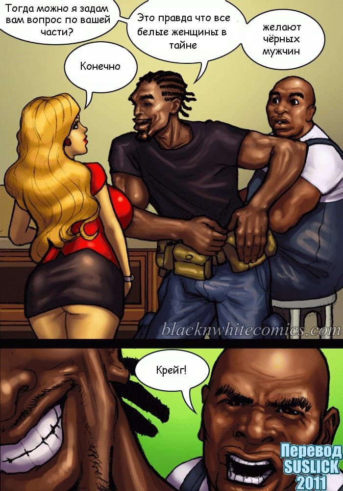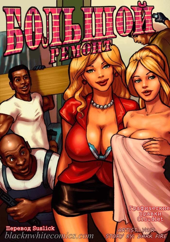 Развратные картинки в комиксе о белой мамочке и ее доченьке, у которых большие негры с огромными членами делали ремонт, а заодно и трахали хозяек, устраивая с ними жесткое порево.