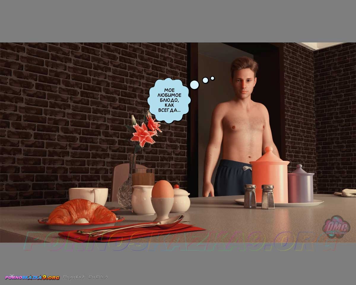 Порно комикс Борьба за жизнь. Часть 4. Джош шел по парку и думал… Он так задумался, что не заметил камень и споткнулся о него. Джош упал, ударившись головой о землю, и потерял сознание. В таком состоянии его и обнаружила соседка…