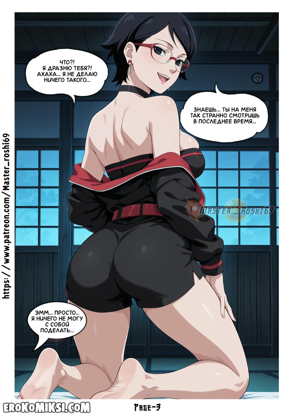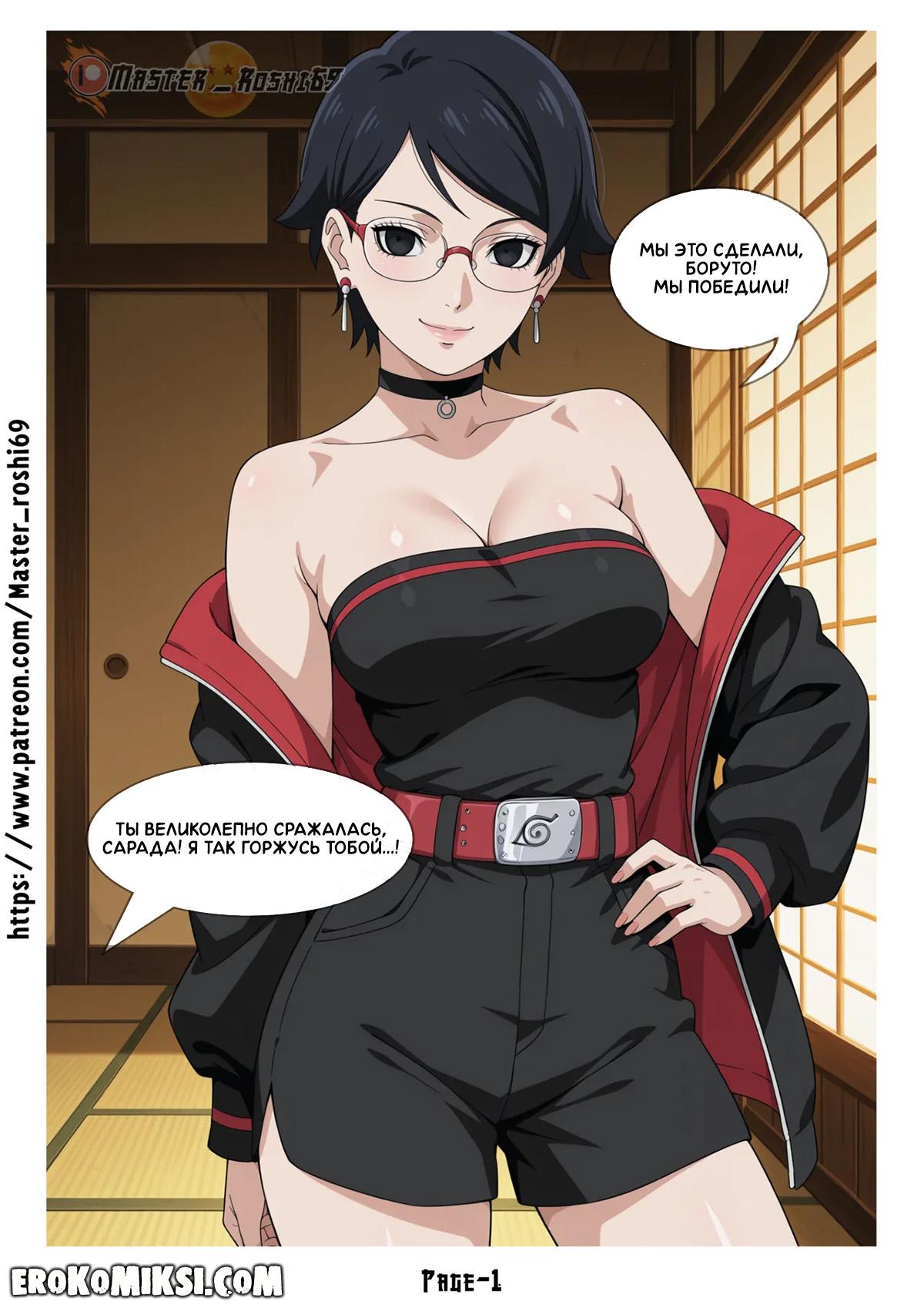 Порно комикс Боруто. Двойные судьбы. Часть 1. После успешной миссии, Сарада решает взять инициативу на себя и начинает соблазнять Боруто, который и так был давно влюблён в красавицу, поэтому, это не составило большого труда, и сперва Сарада отсосала своему другу, а затем дала ему как следует оттрахать свою тугую киску…