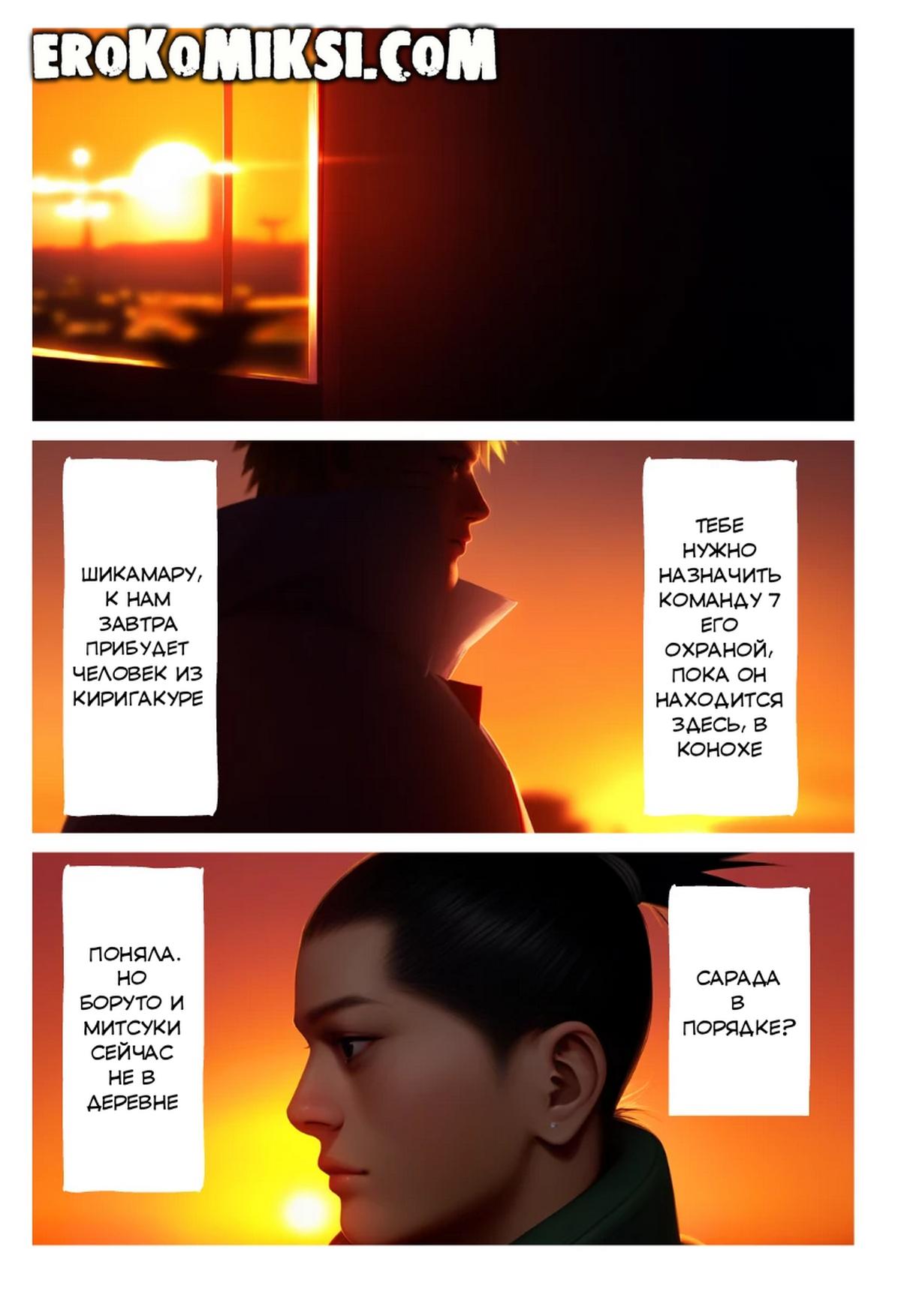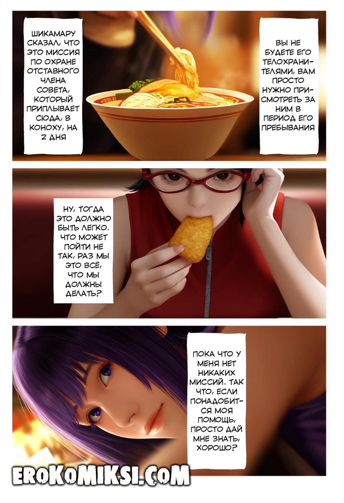 Порно комикс Боруто. Секрет Сарады. Часть 2: Особая миссия. Наруто поручает Сараде миссию — защищать почётного гостя, прибывшего издалека. Однако эта миссия оборачивается жёстким сексом…