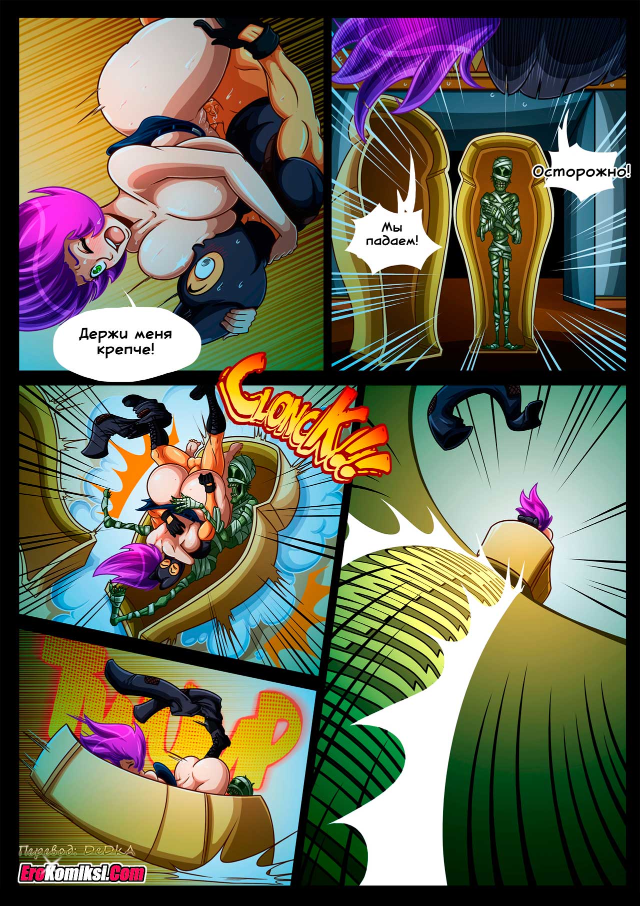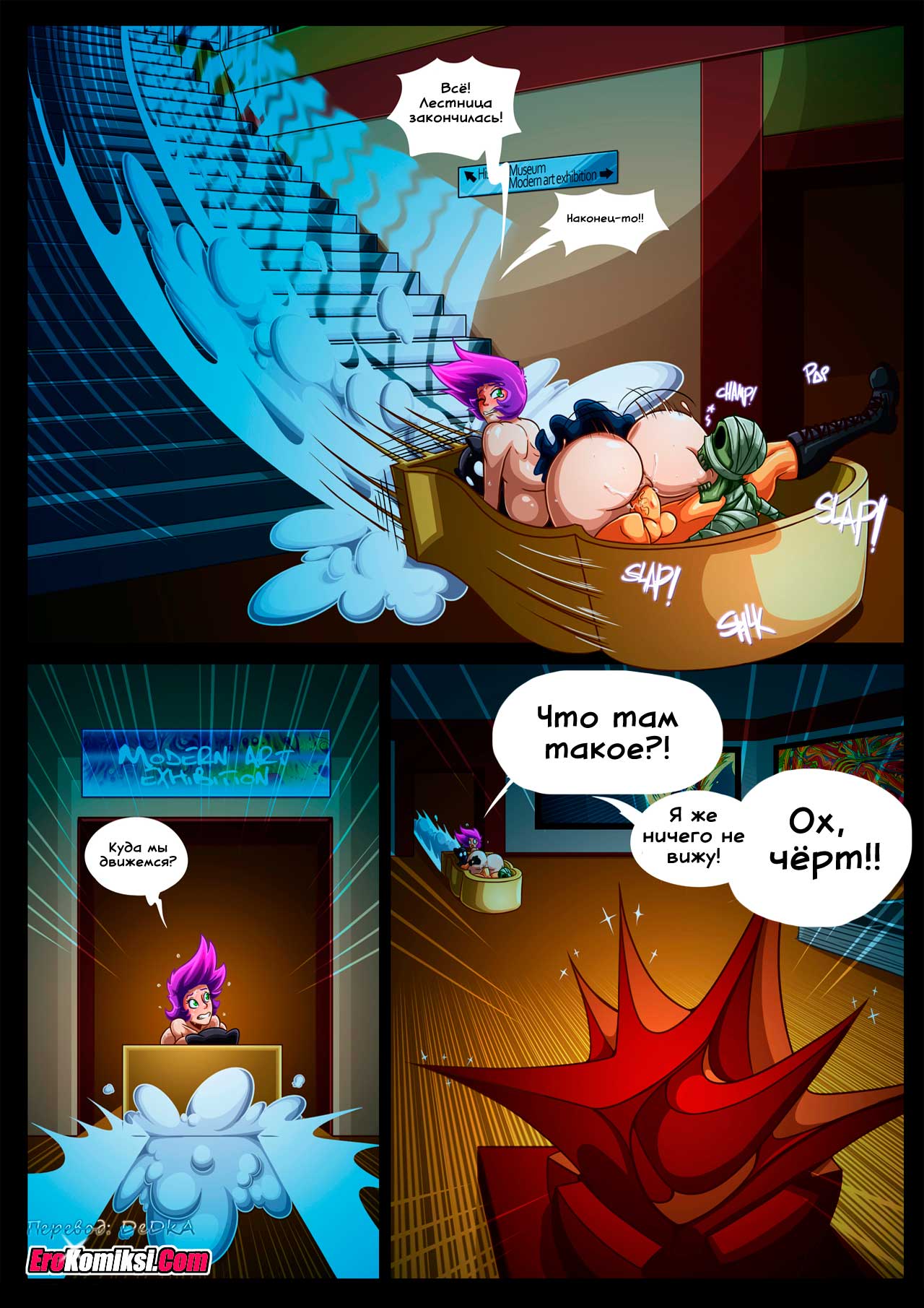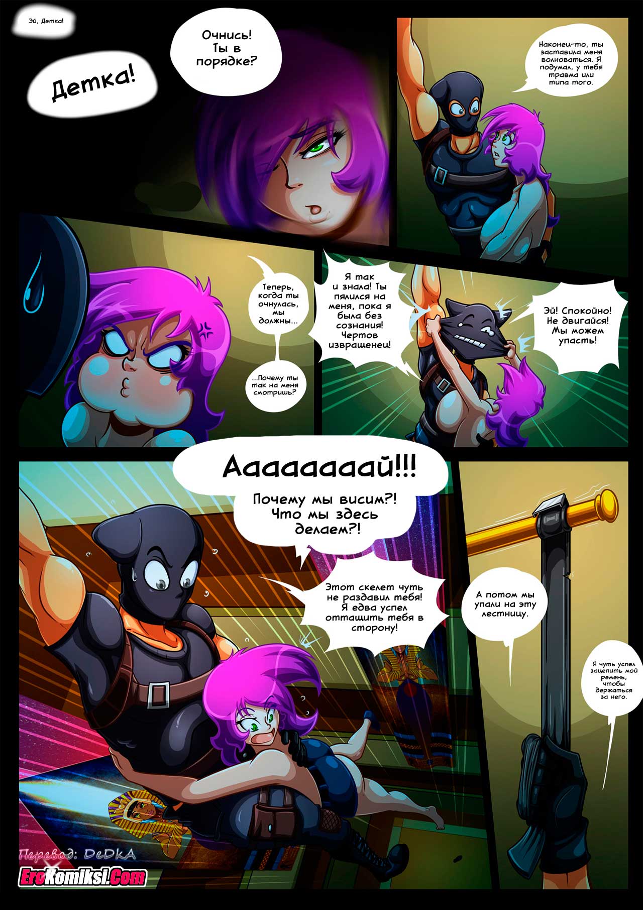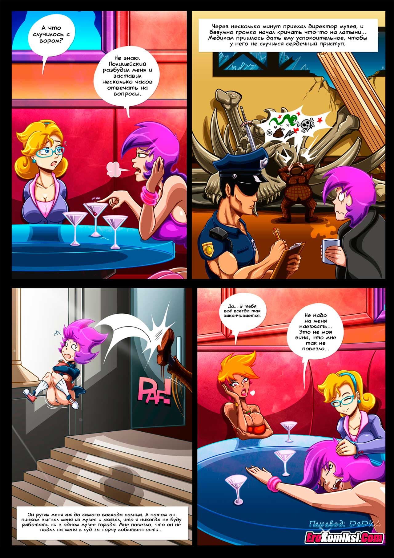 Порно комикс Цепная реакция 2 часть расскажет о дальнейших событиях развратного произведения. Так после того, как незадачливую сотрудницу службы охраны музея и вора, проникшего в музей, чтобы совершить кражу, едва не раздавил рухнувший скелет динозавра, последовала цепь событий, которые можно назвать цепной реакцией. Сначала бедолаги повисли на ремне вора, потом рухнули в пустой саркофаг, потом с грохотом съехали в саркофаге по ступенькам лестницы, а потом… Прочтите комикс, и вы узнаете, что было потом.