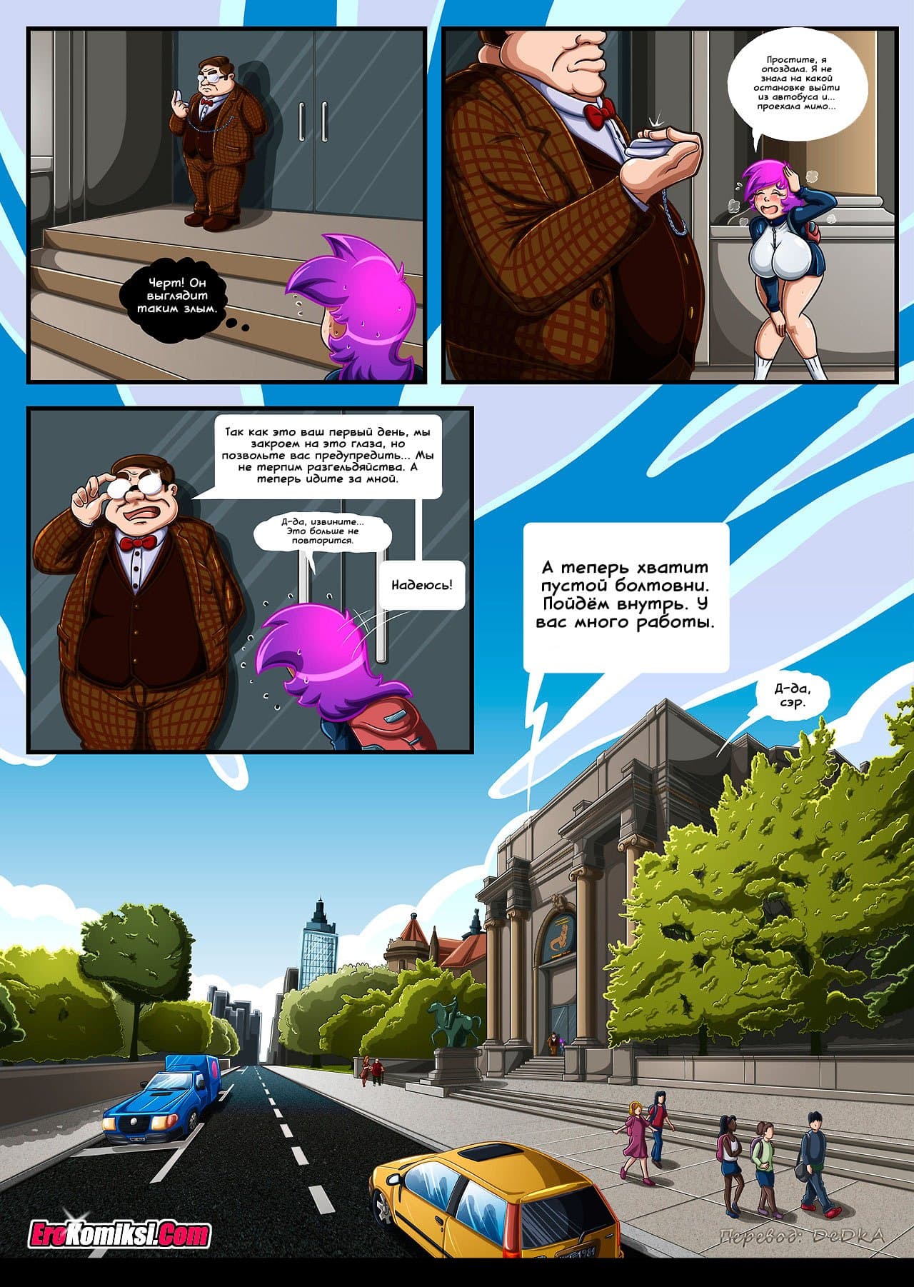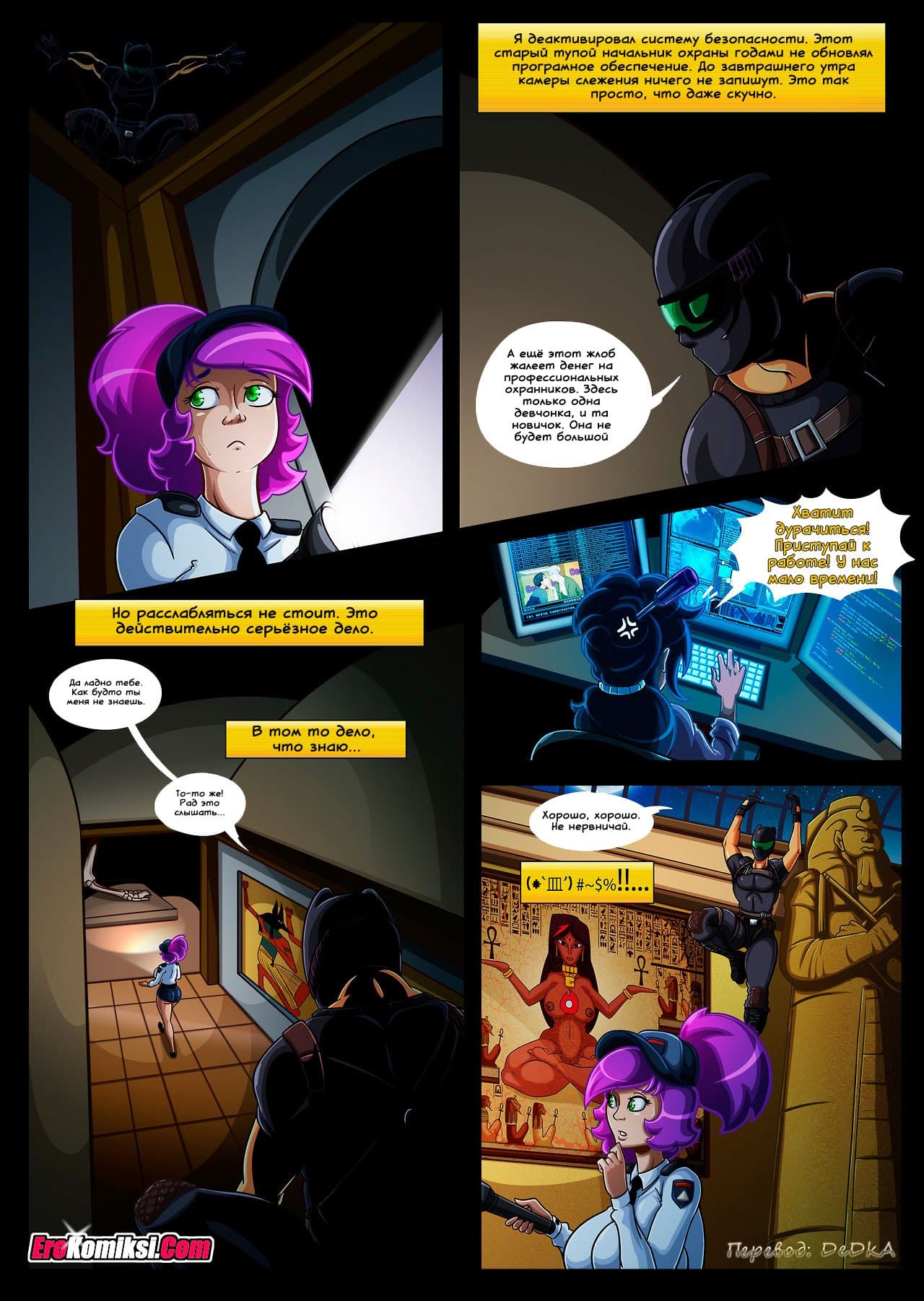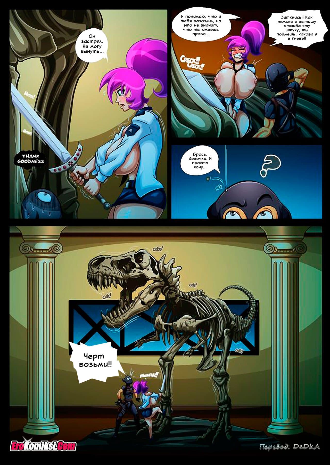 Порно комикс Цепная реакция расскажет о том, как одна девушка устроилась на работу в службу охраны музея естественной истории. Её первый рабочий день, как-то сразу не задался. Началось с того, что она опоздала на работу. Правда, на первый раз её за это простили. А вот то, что она устроила в музее на её первом ночном дежурстве, простить уже не смогли. Её вышибли с работы, как пробку! За что? Прочтите, и сами узнаете!