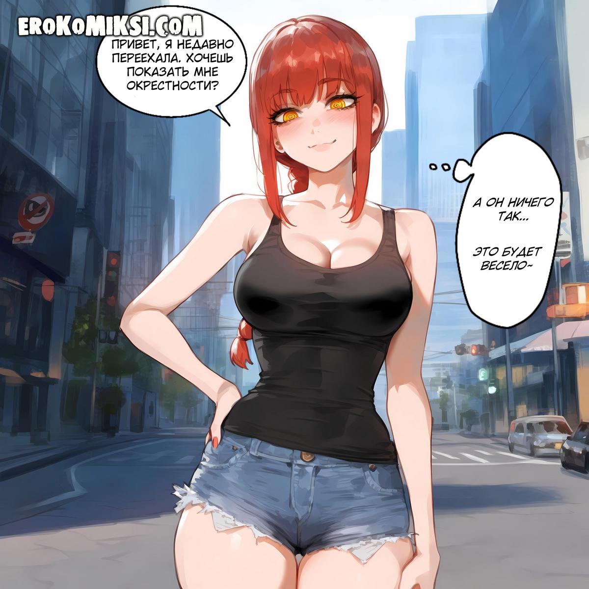 Порно комикс Человек — бензопила. Макима НТР История. Макима посетила новый город и попросила местного жителя провести экскурсию~ Скажем так, она получила немного больше, чем просила…