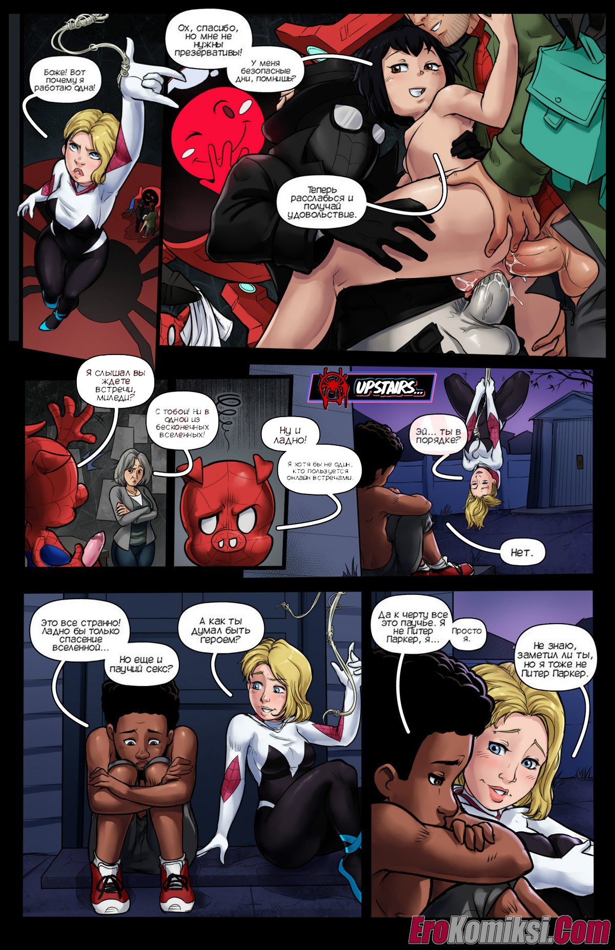 Порно комикс Человек паук: Паучий секс. Часть 1. Spider Sex. Spider Man. Tracy Scops Человеки Пауки из разных вселенных встретились друг с другом. Пока брюнеточка веселилась с тремя паучками, Гвен уединилась с Майлзом и решила с ним поебаться.