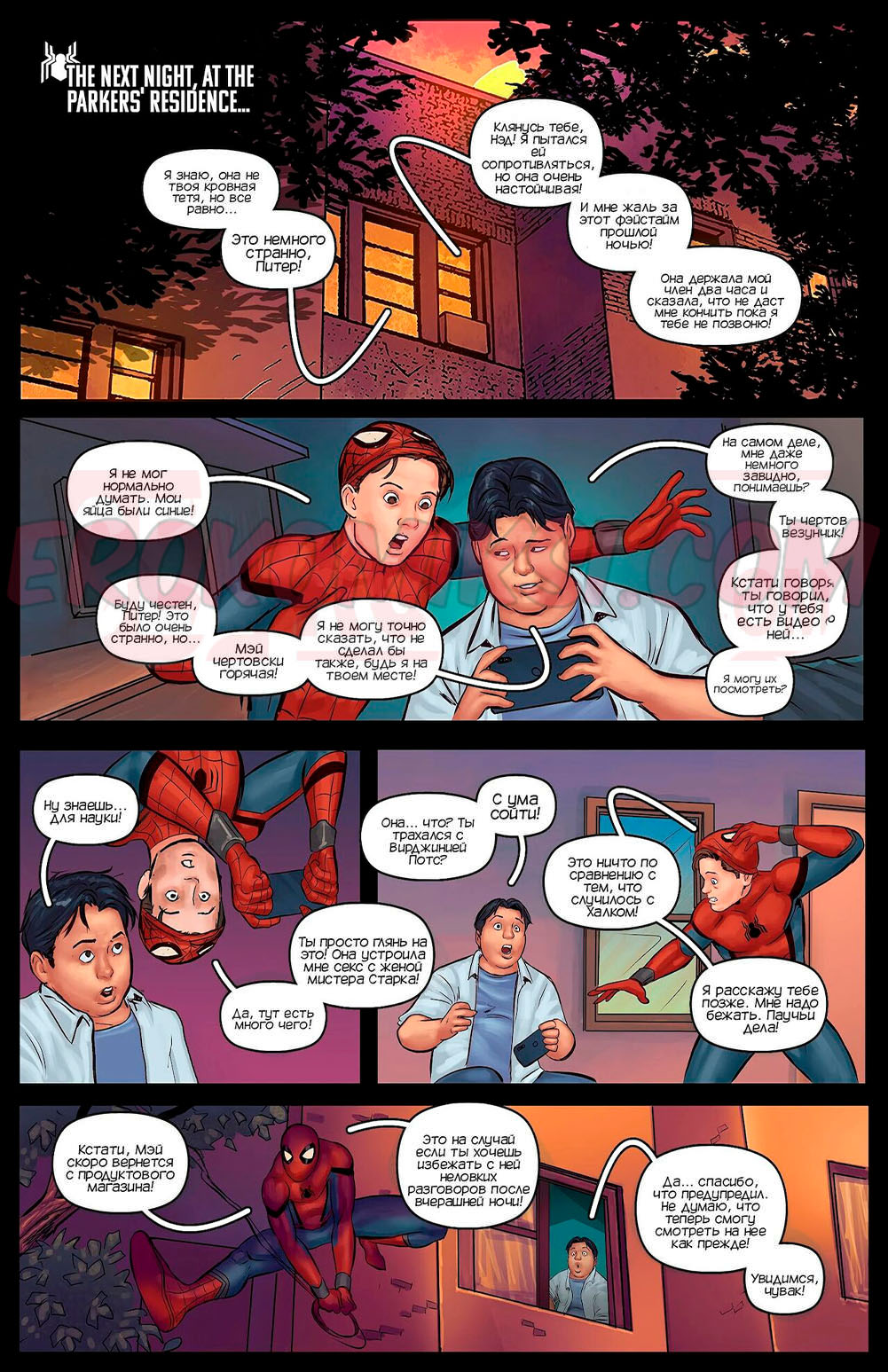 Порно комикс Человек паук. Тетя кончает. Часть 2. Aunt Cummin. Spider Man. Tracy Scops ПАМЯТИ ТЕТИ МЭЙ ПОСВЯЩАЕТСЯ. Питер Паркер позвонил своему другу по фэйстайму и показал как его тетя отсасывает у него и дает трахнуть себя в задницу. Друг стал завидовать, но к счастью на следующий день тетя решила поебаться и с ним.