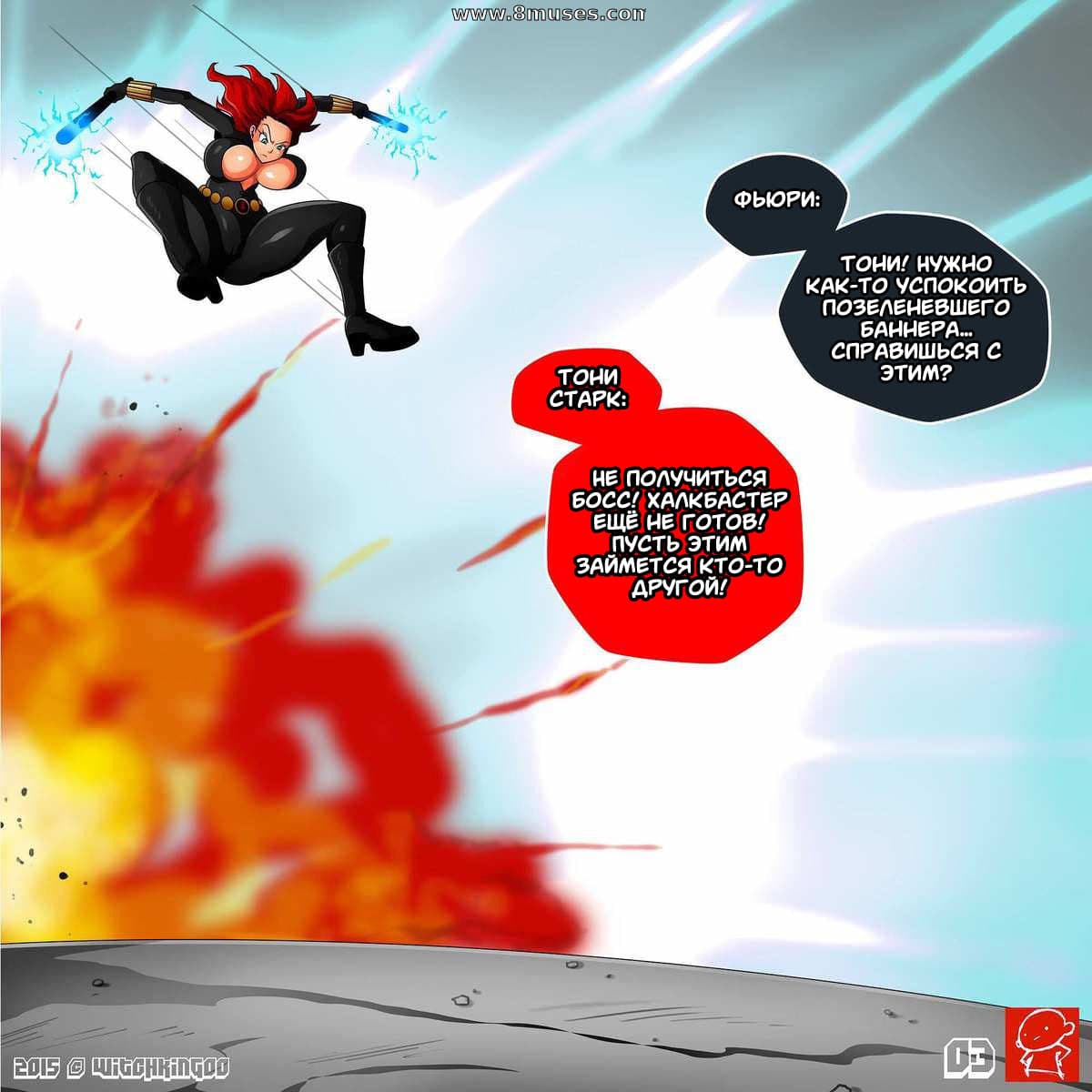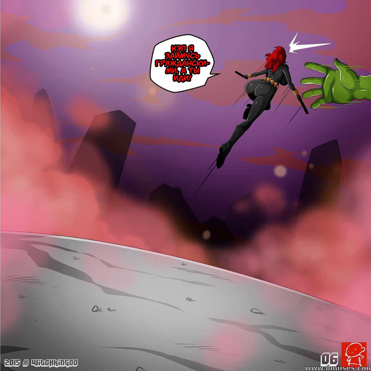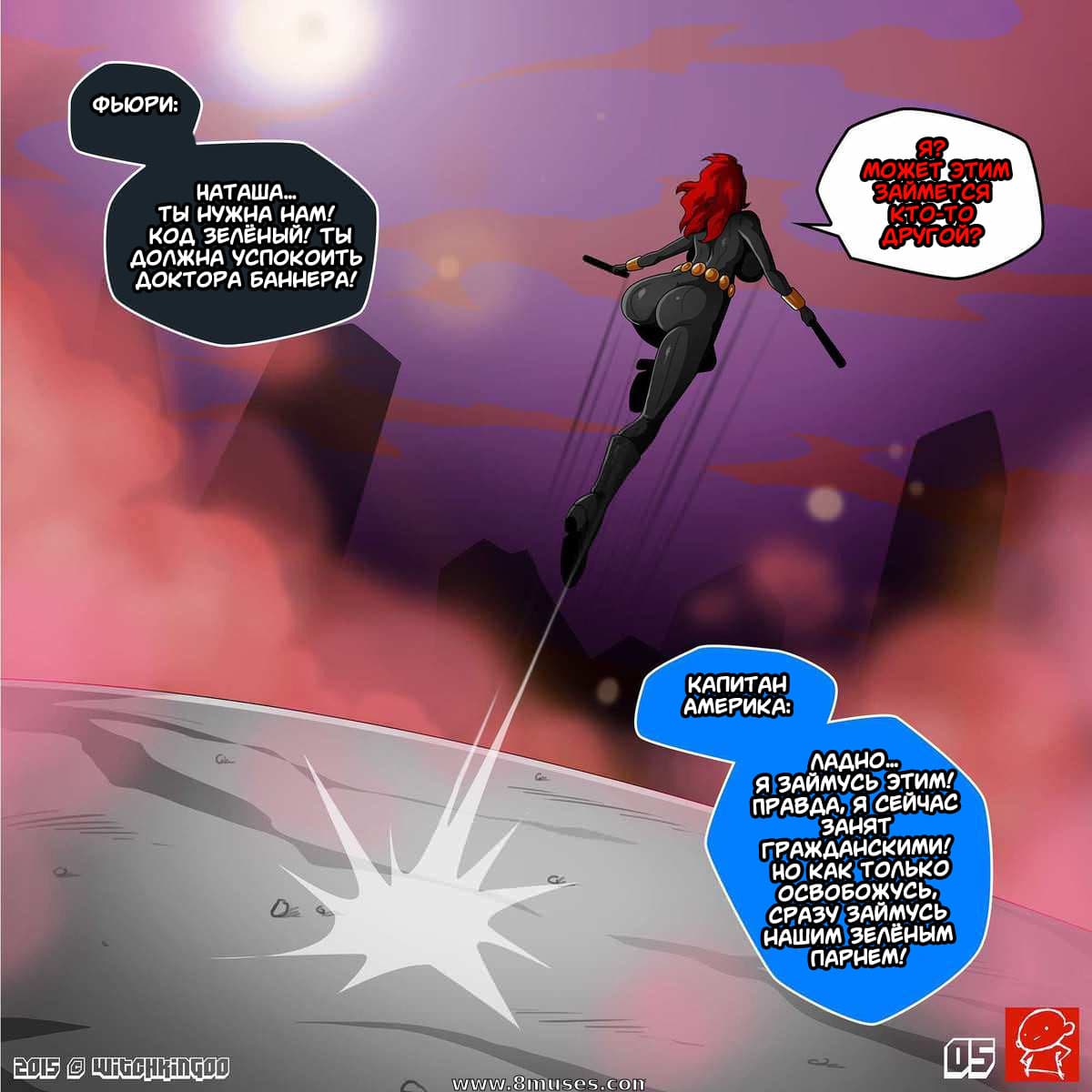 В данном комиксе для взрослых вы узнаете, новые интимные подробности из жизни Халка и Черной Вдовы. Оказывается Халк явно переполнен яростью, потому что сперматоксикоз давит на его затуманенные мозги. И чтобы, хоть, как-то успокоиться он в бешенстве ищет женскую особу для удовлетворения своих похотливых нужд. Как раз рядом оказалась аппетитная женщина герой – Черная Вдова. Тут и начинается развратное противостояние, о подробностях которого вы узнаете далее…