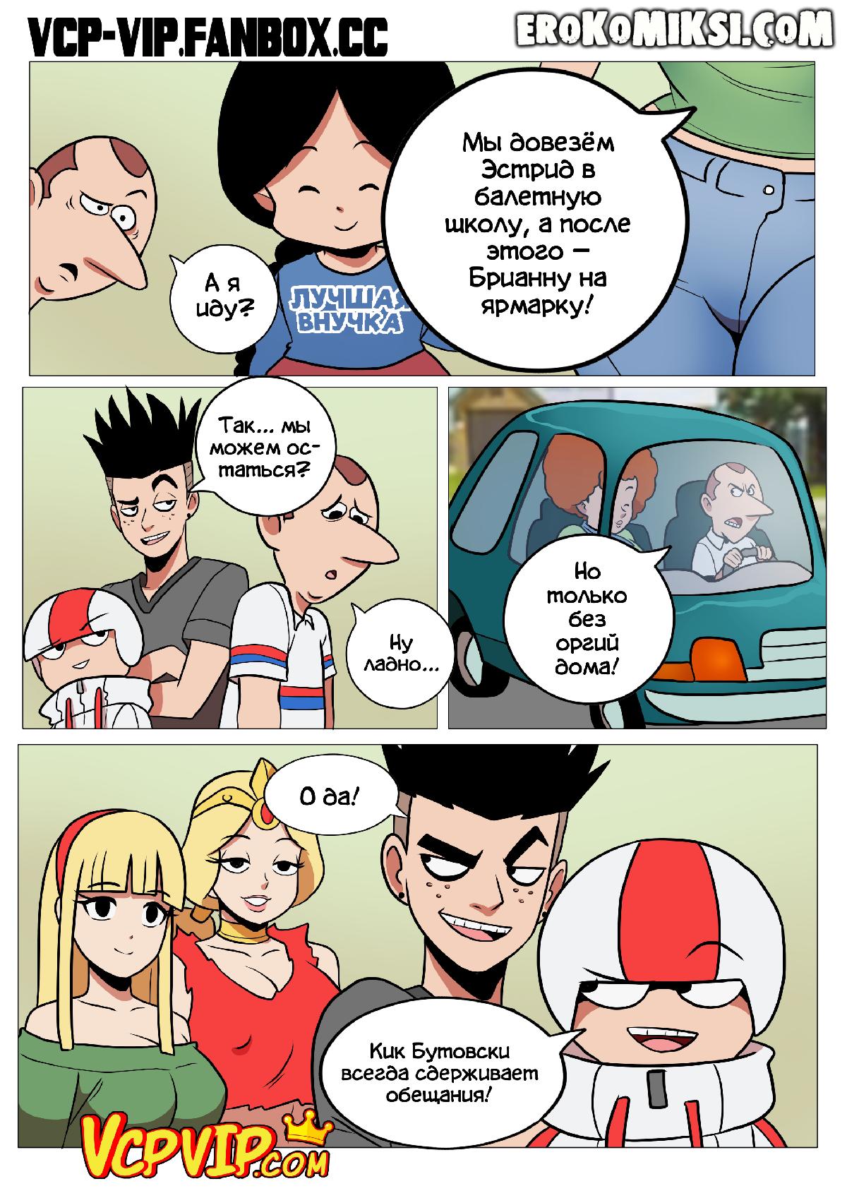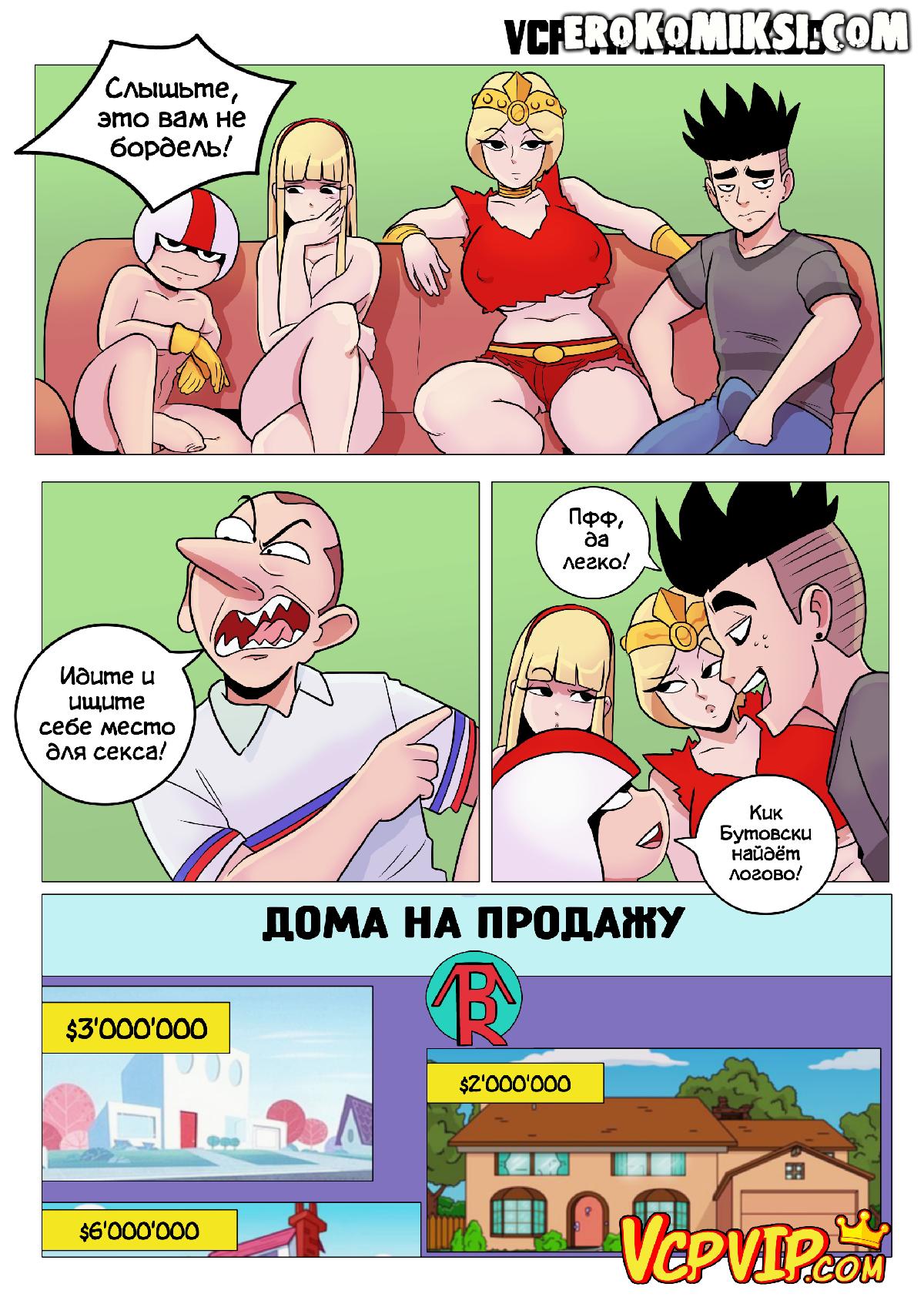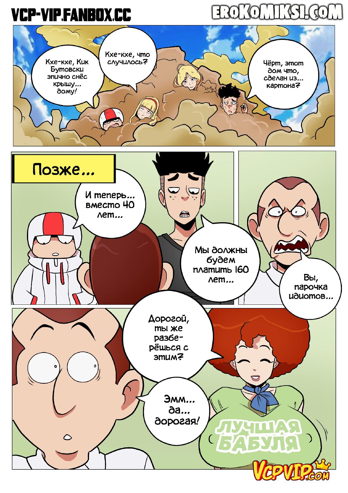 Порно комикс Чертов Бутовский. Часть 2. К Бреду приезжает давняя знакомая, с которой он переспал. Сюрпризом становится то, что она родила от него ребёнка. Из-за обстоятельств Бред и Кик должны искать себе место для секса, но это оборачивается странной концовкой…