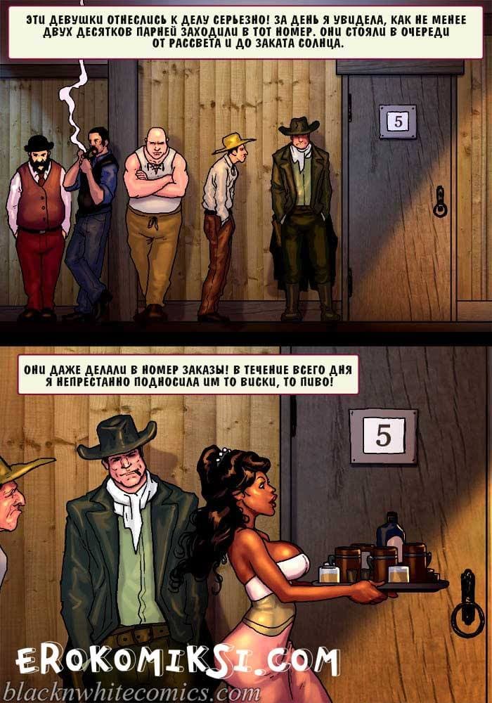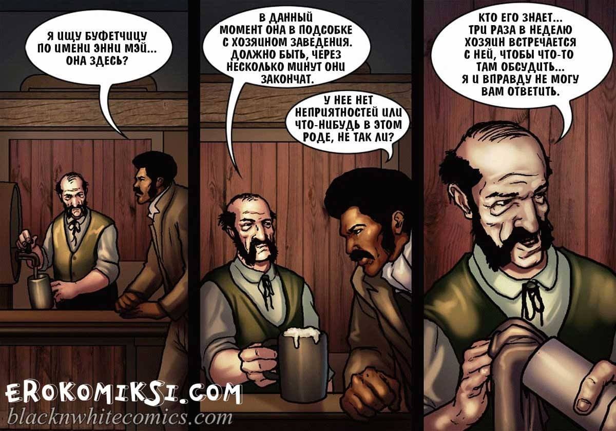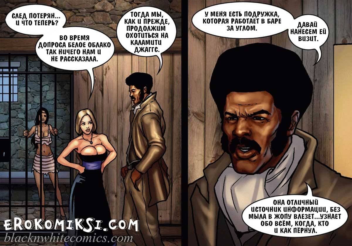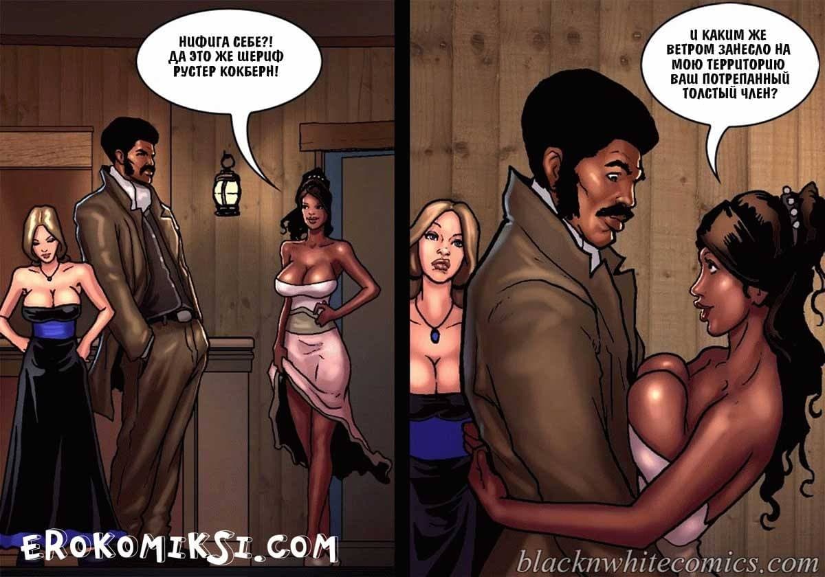 Откровенные порно истории комиксы о честном копе, преследующем банду девиц, которые затрахивают до смерти своих любовников продолжаются. К разочарованию шерифа, допрос захваченной в плен дамы из индейской резервации по кличке «Белое облако» ничего не дал. Тогда Рустер Кокберн решает навестить свою знакомую барменшу, возможно, располагающую нужной информацией. Но девушка готова поделиться ею за определенную расплату натурой со стороны представителя правопорядка. От этого условия честный шериф не отказывается и к недовольству Сенеки идет добывать своим членом важные показания…
