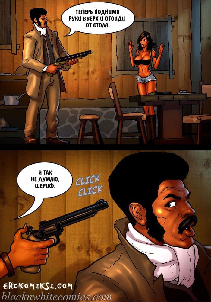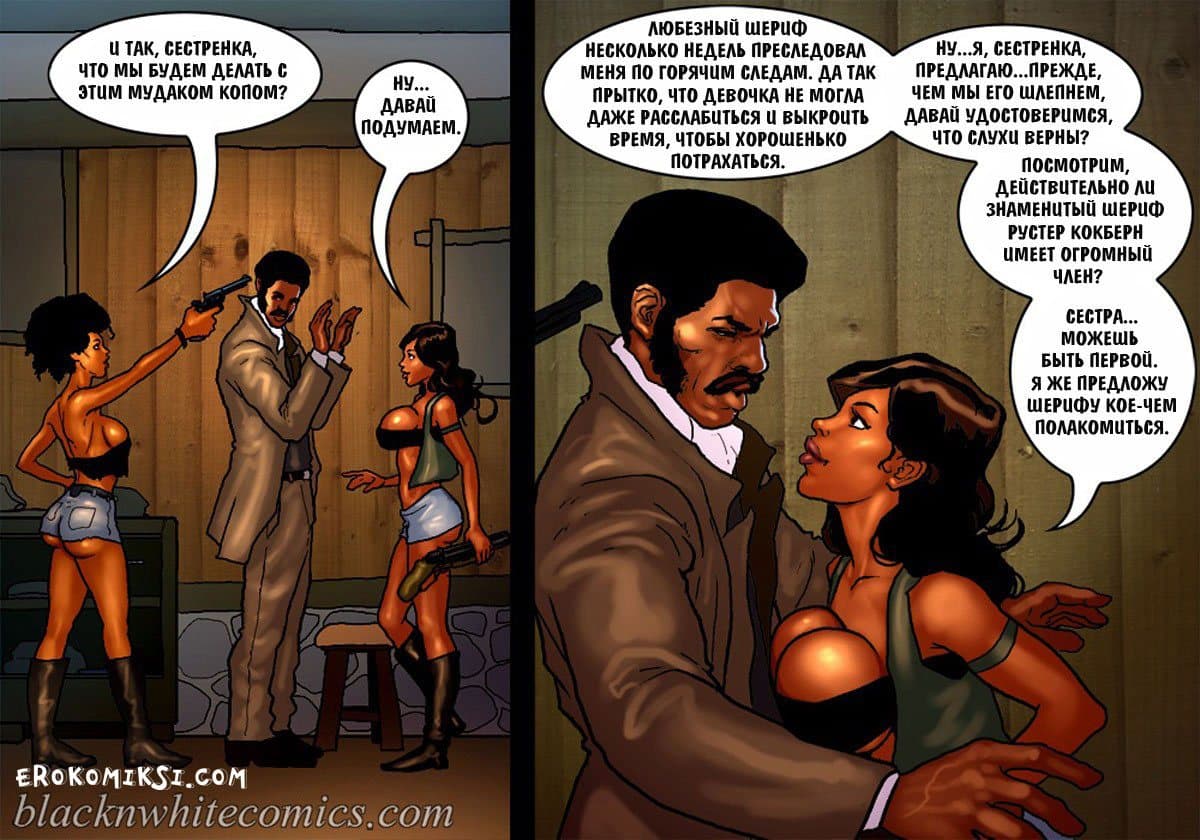 Порно комиксы онлайн бесплатно о честном шерифе снова порадуют вас великолепным продолжением. На этот раз Рустер Кокберн попытался захватить опасных и крайне аппетитных преступниц из банды Каламити Джаггс. Но сам угодил в ситуацию, в которой ему пришлось устроить сексуальный бой с этими красотками, причем, за возбуждающим процессом наблюдала его спутница Сенека, которая от всей этой картины потекла, словно шлюха! Страсти в детективном комиксе накаляются…