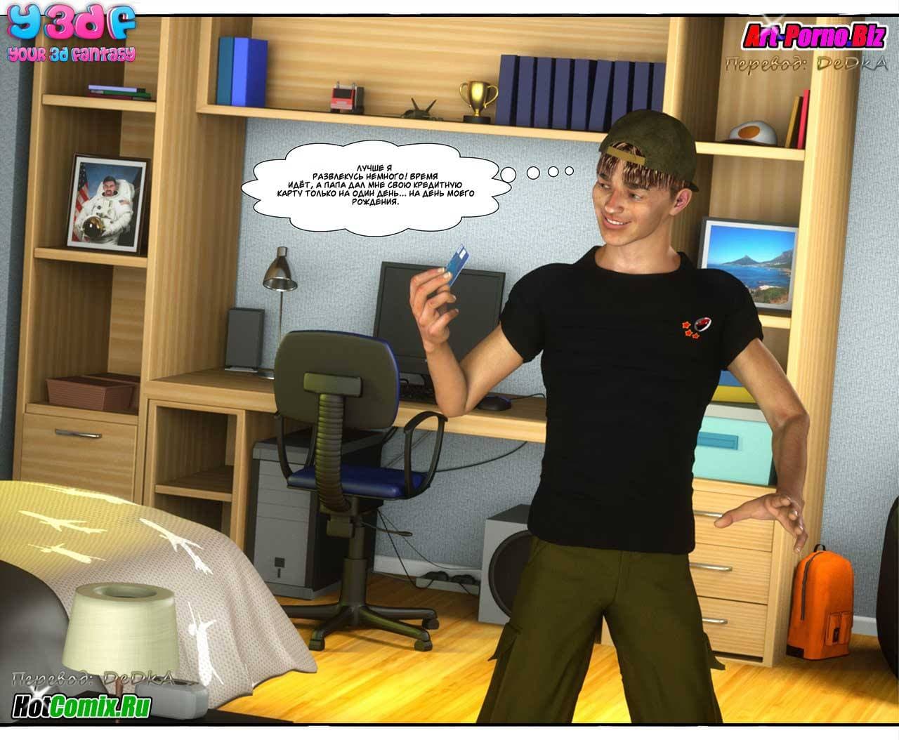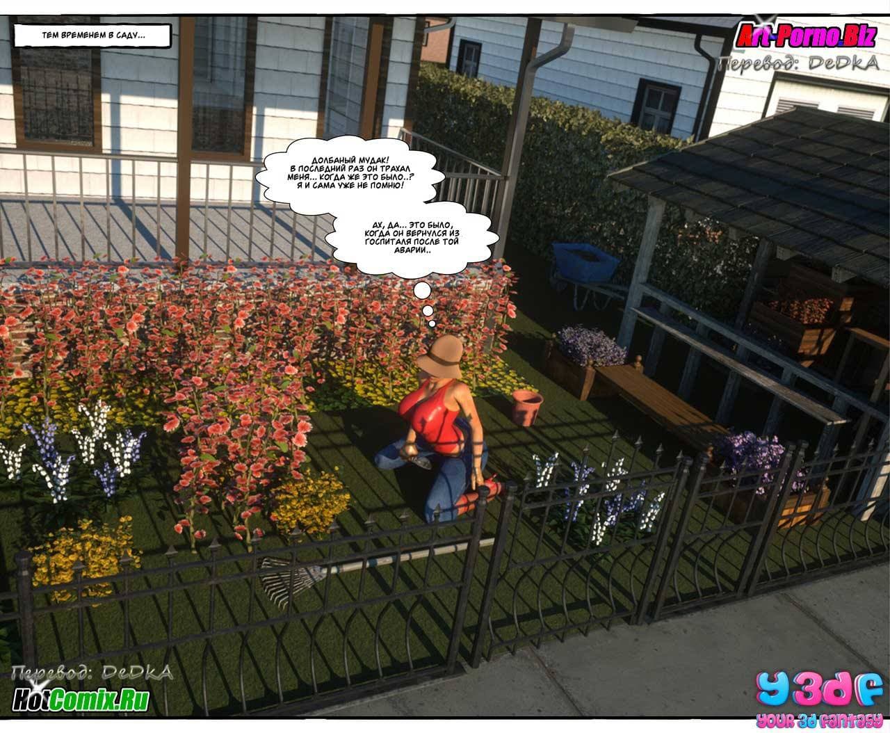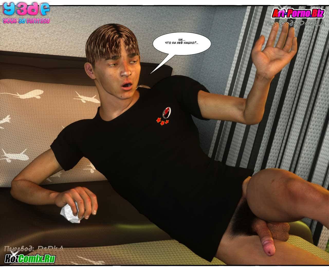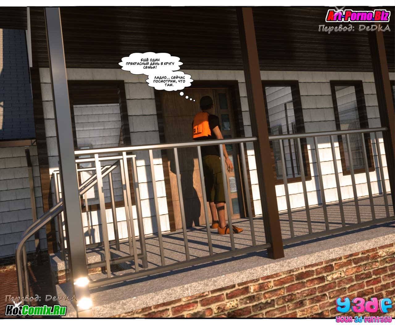 Ценителям, обожающим секс комиксы 3д, предлагаем крайне возбуждающую историю, которая начинается с того, что Макс, подходя к своему дому, уже издали стал слышать ссору между родителями. Что же на этот раз они не поделили между собой. Как оказалось, сексуальная мамаша требовала от мужа полноценного полового акта, от которого, она, наконец, получит долгожданное удовольствие. Отец Макса был не против, но сказал, что в данный момент он не хочет, а вечером все будет. Только вот, возбужденной женщине нужно сейчас, а терпеть не охота…
