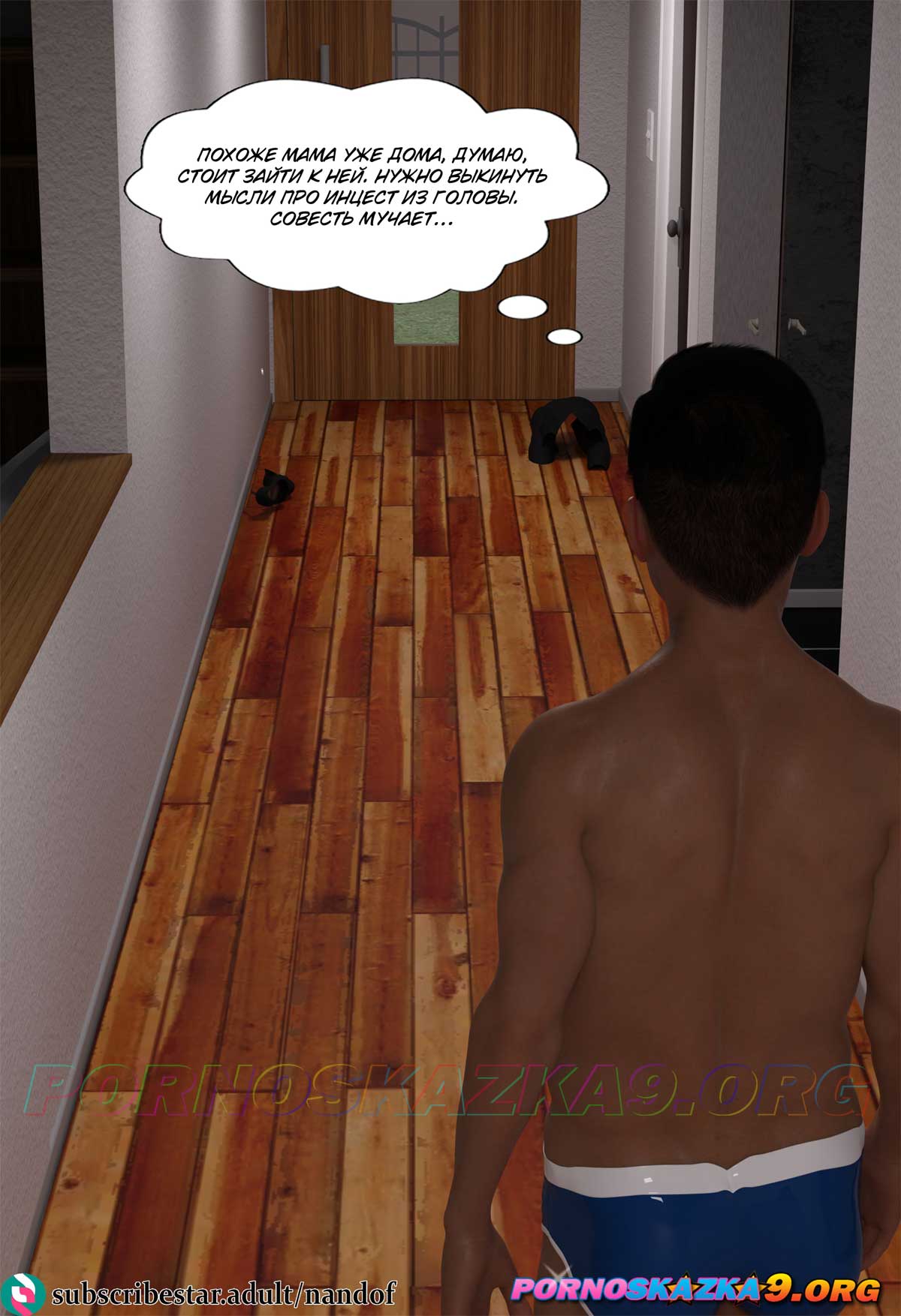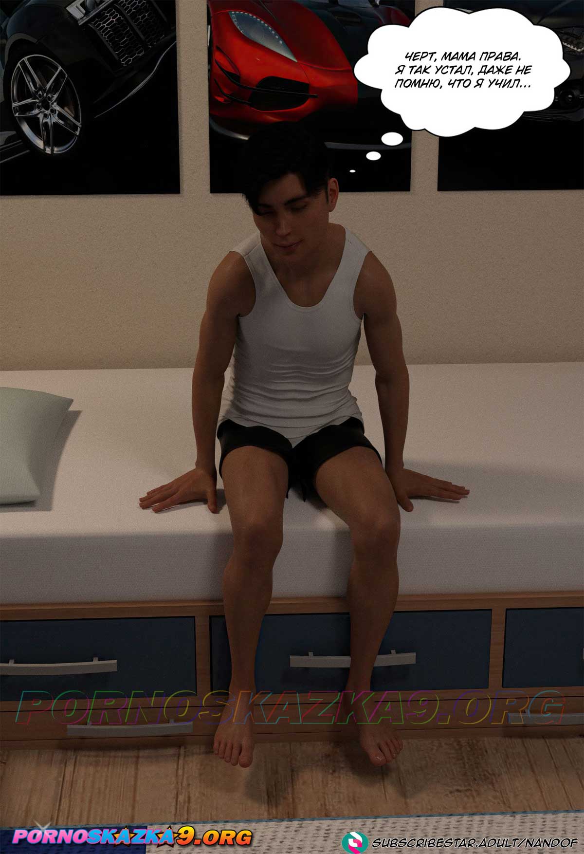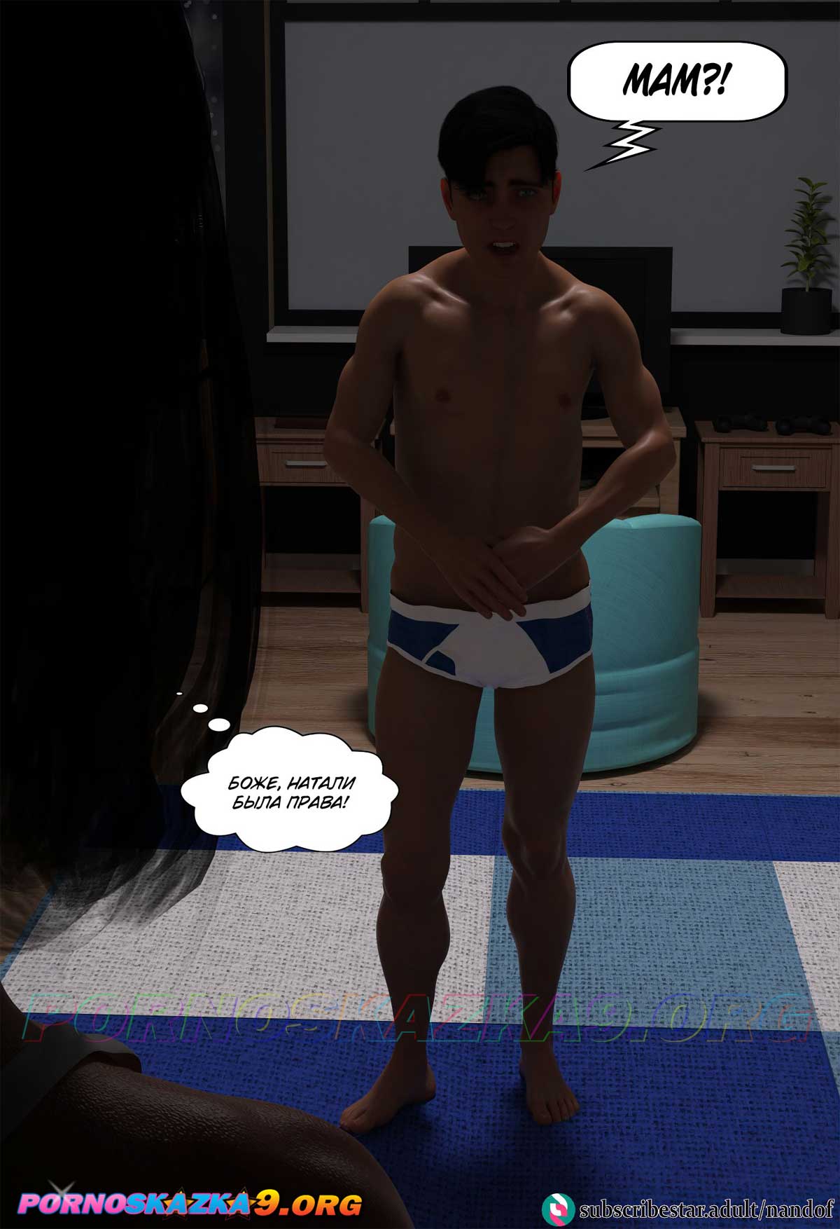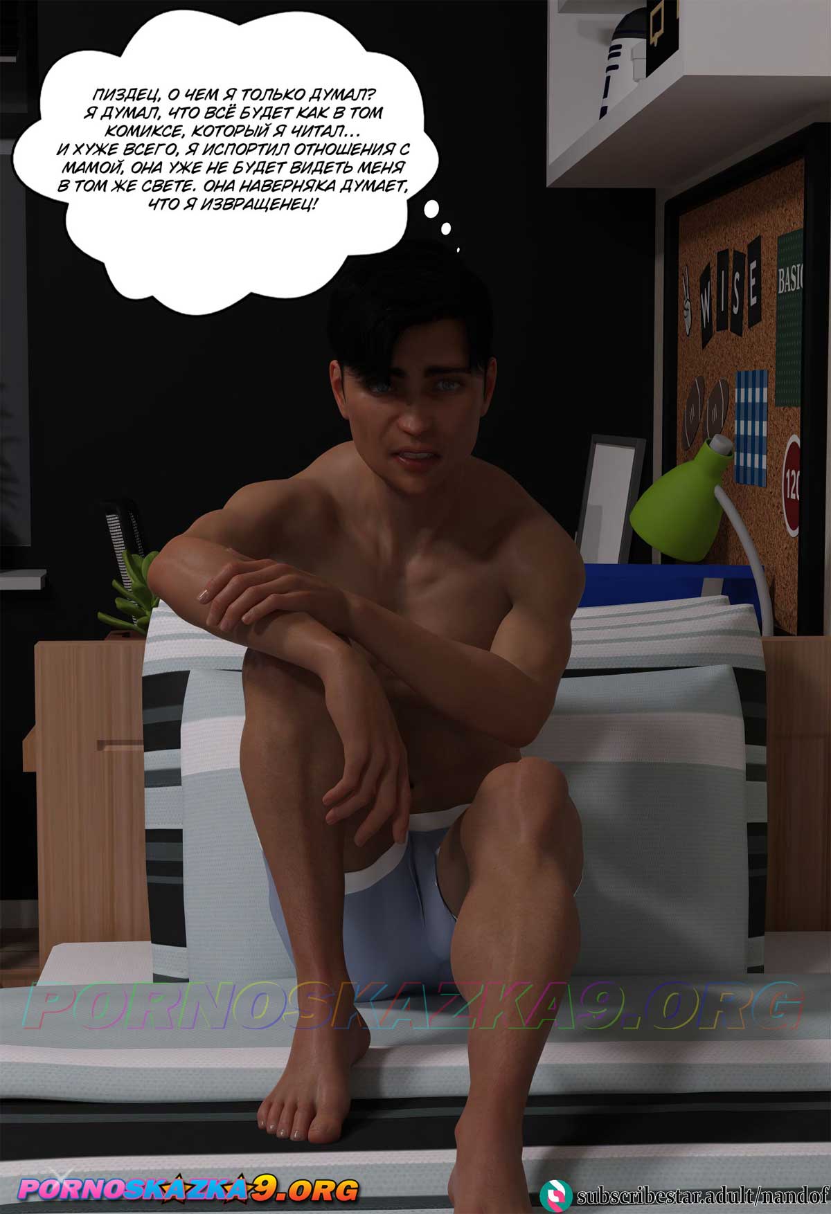 Порно комикс Что я наделала. Часть 1. Здравствуйте, друзья! Меня зовут Изабель, мне 42 года. В семье только я и мой сын Алекс, ему 20 лет. Его отец оставил нас, когда ему было 3 года, и с тех пор все обязанности по дому и заработку легли на меня. Алекс хороший мальчик, но в последнее время много перетруждается в учебе, и вот я решила помочь ему расслабиться. А далее произошло неслыханное, именно об этом я сегодня и расскажу…