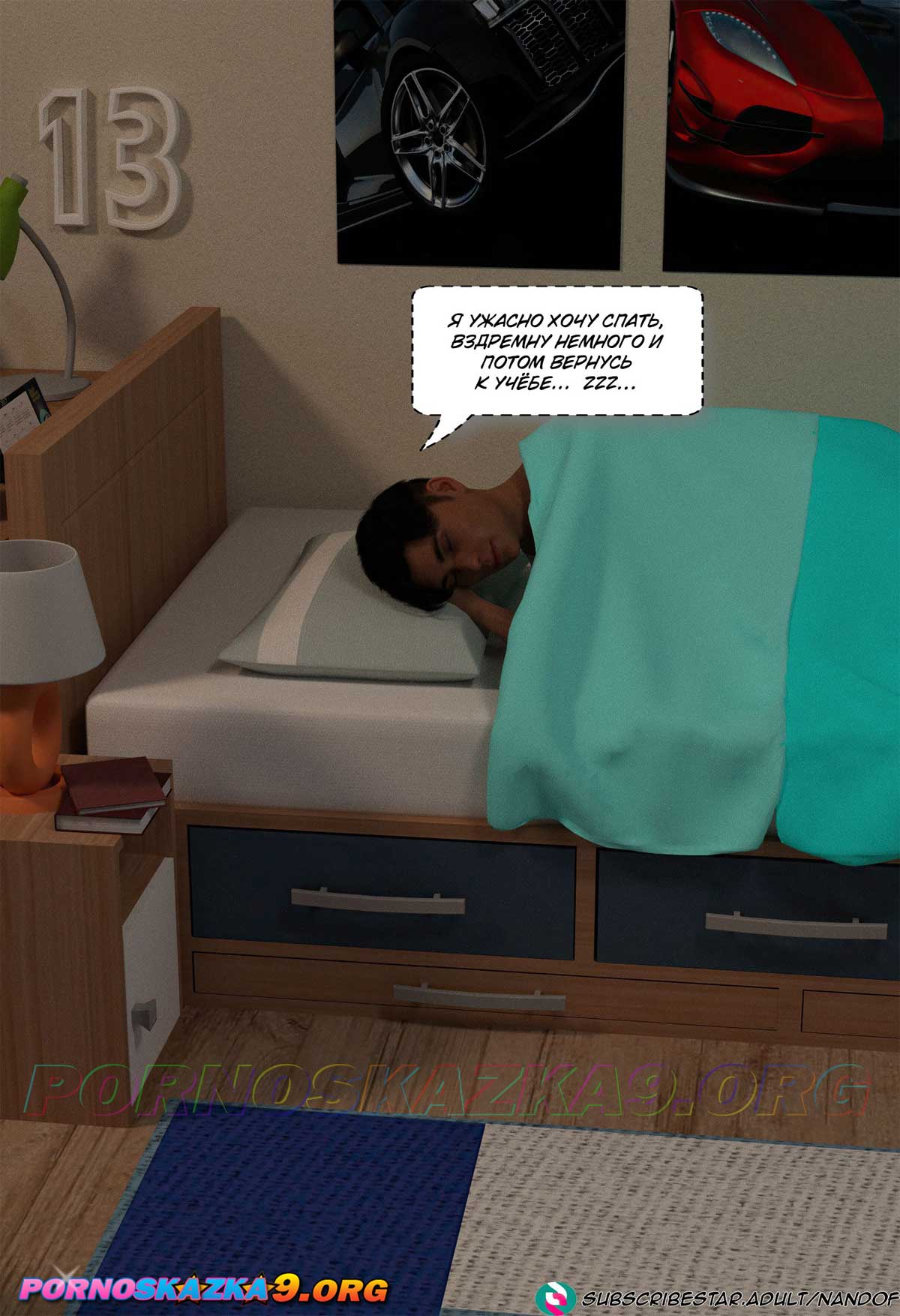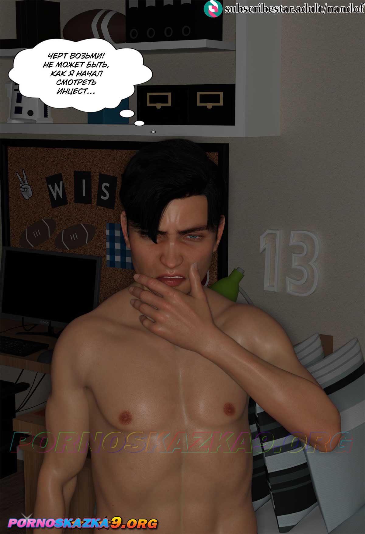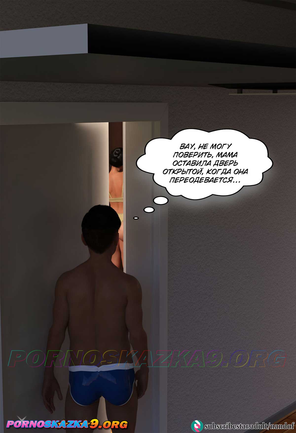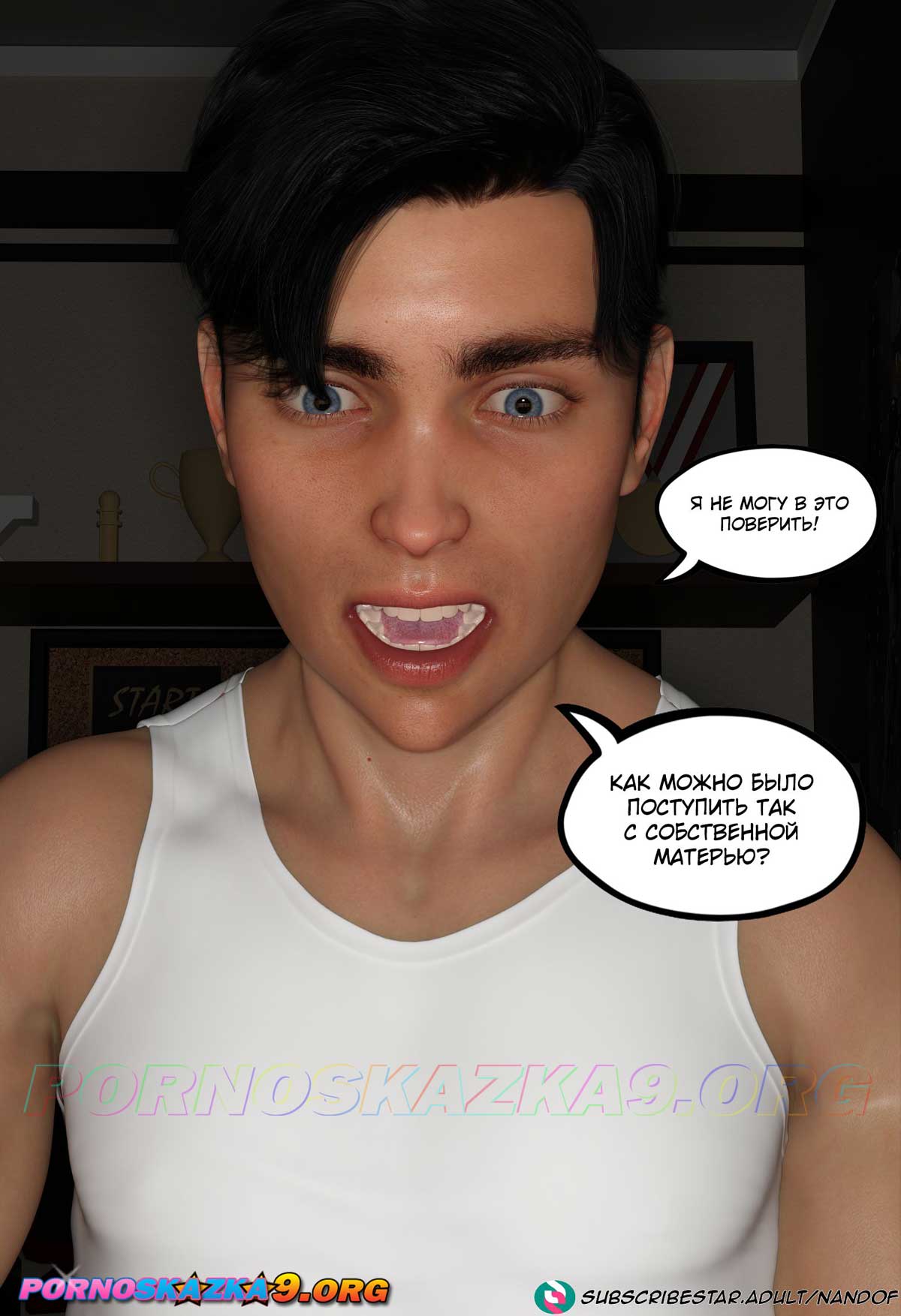 Порно комикс Что я наделала. Часть 1. Здравствуйте, друзья! Меня зовут Изабель, мне 42 года. В семье только я и мой сын Алекс, ему 20 лет. Его отец оставил нас, когда ему было 3 года, и с тех пор все обязанности по дому и заработку легли на меня. Алекс хороший мальчик, но в последнее время много перетруждается в учебе, и вот я решила помочь ему расслабиться. А далее произошло неслыханное, именно об этом я сегодня и расскажу…