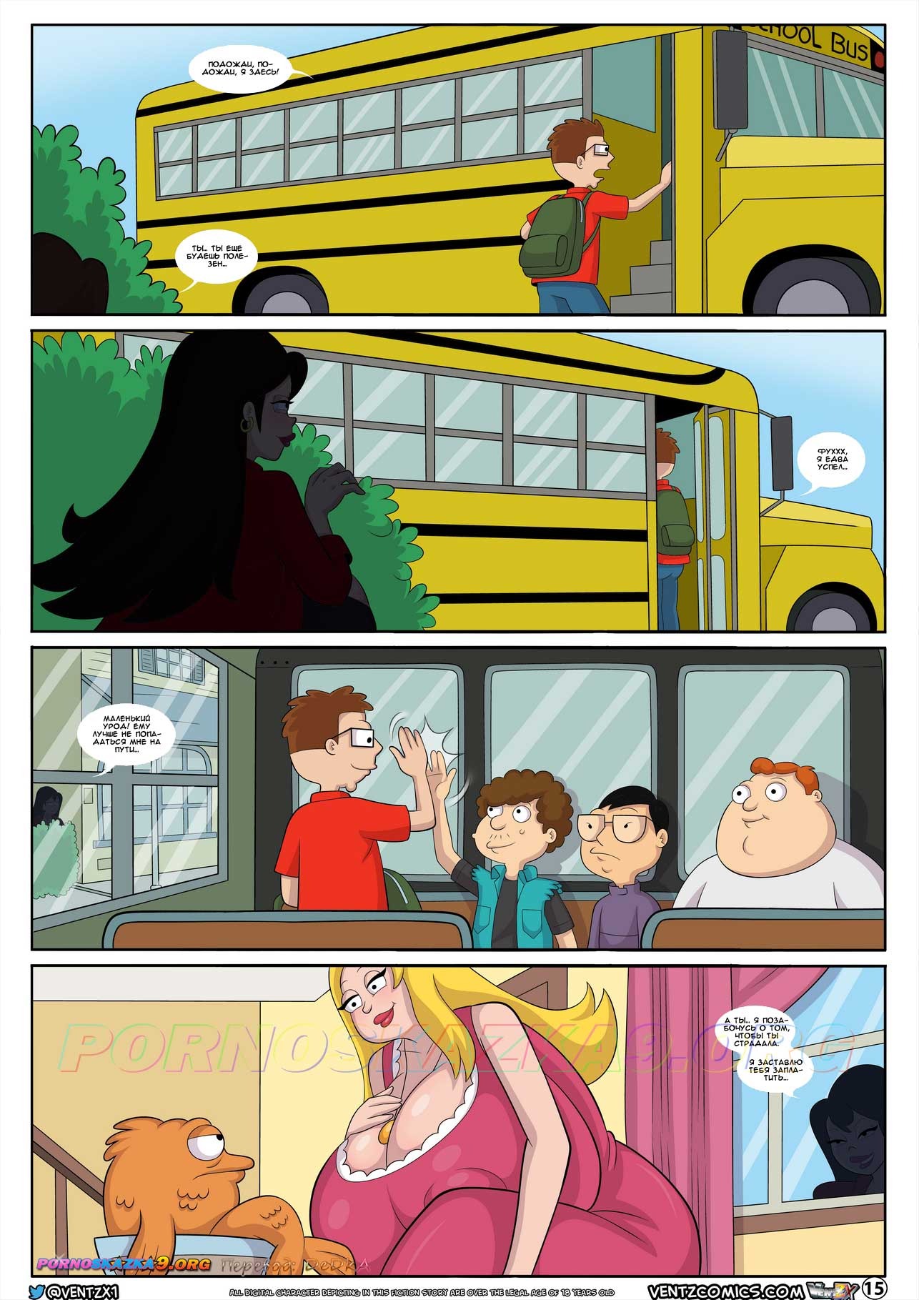 Порно комикс Чудеса американского сына. Часть 3. Стив, со своим космическим другом, Роджером, поселившимся у него в голове, продолжает постигать азы инопланетного разума и пытается использовать свои новые навыки на практике, что обеспечивает максимальную плотность приключений на каждый квадратный сантиметр его задницы…