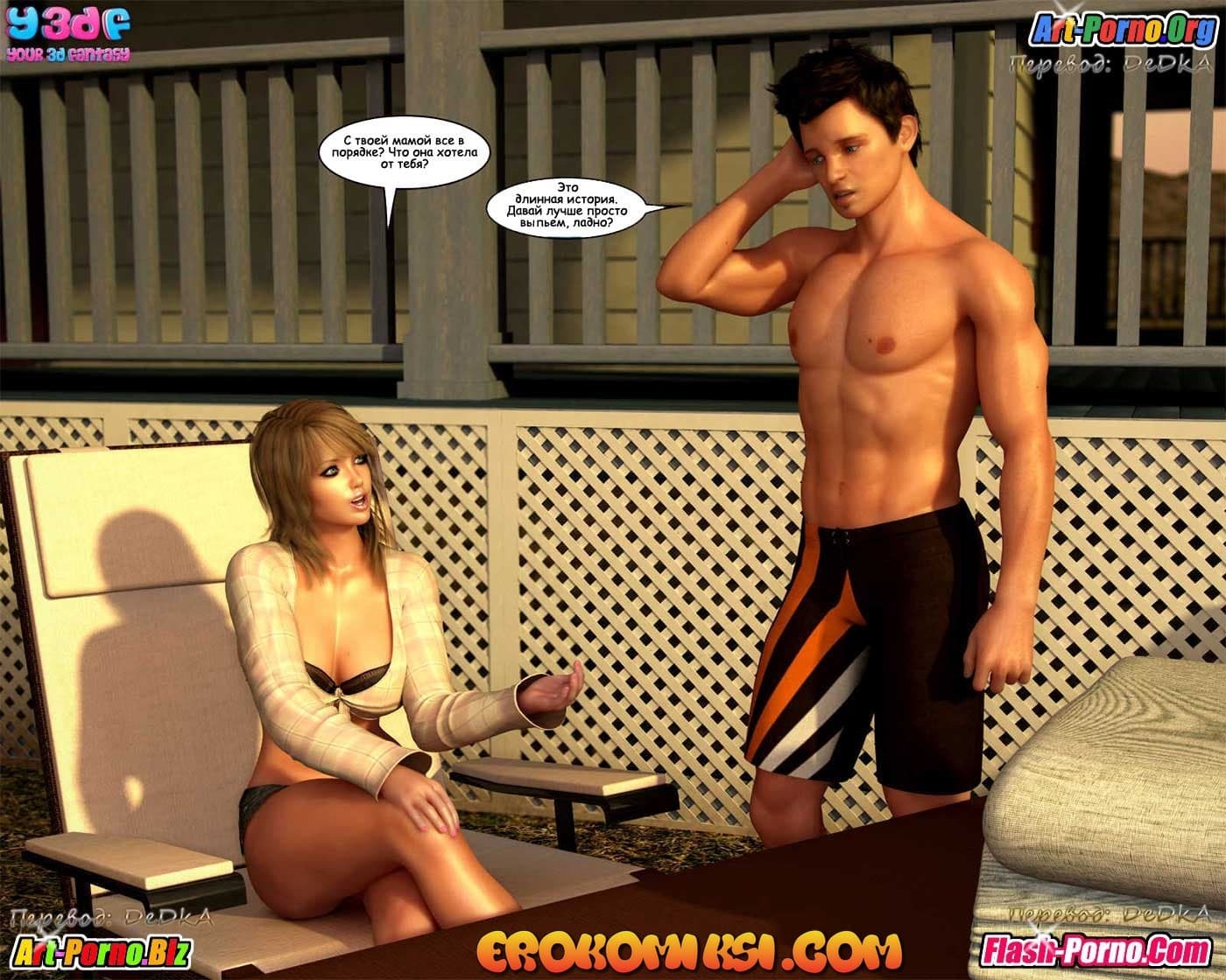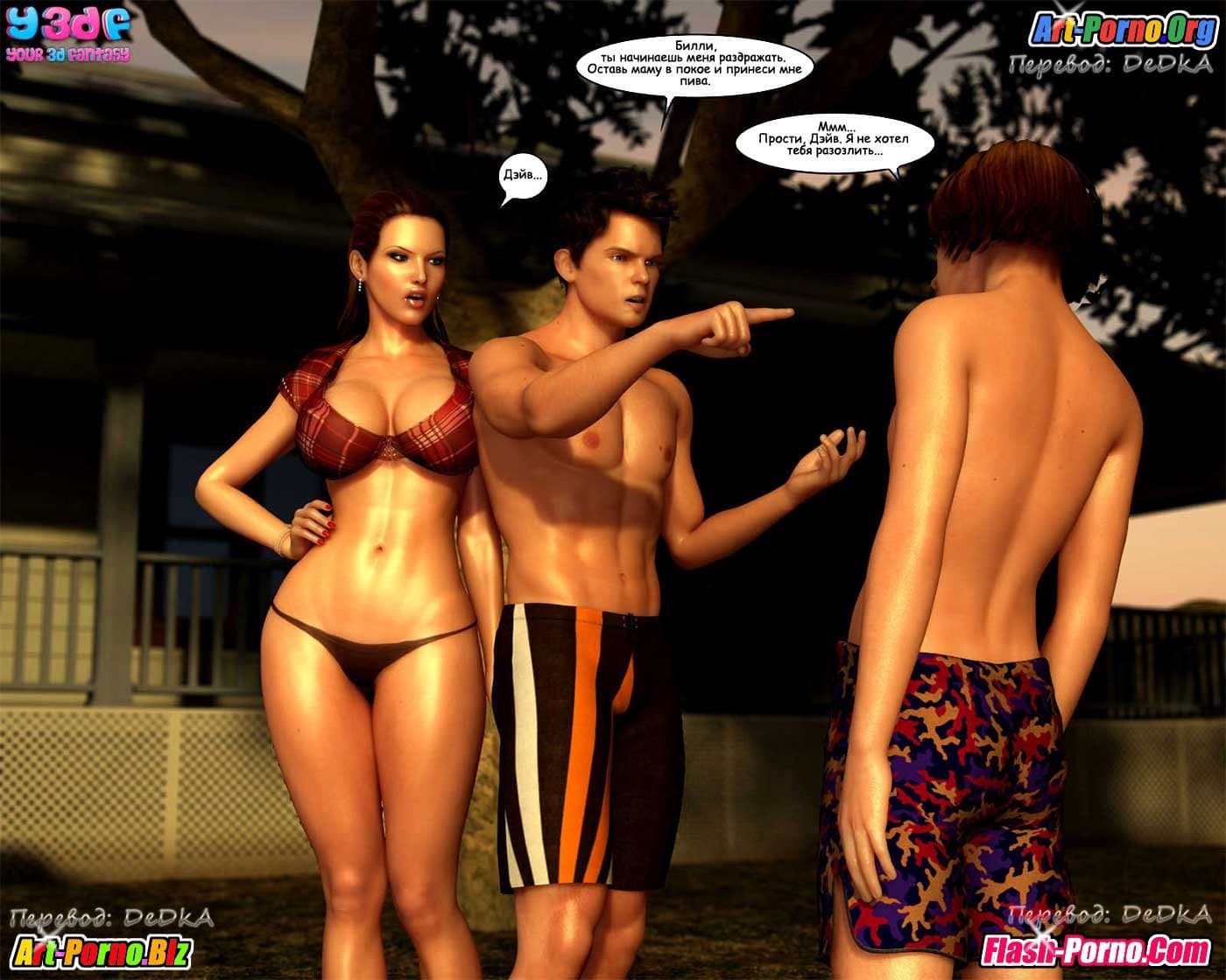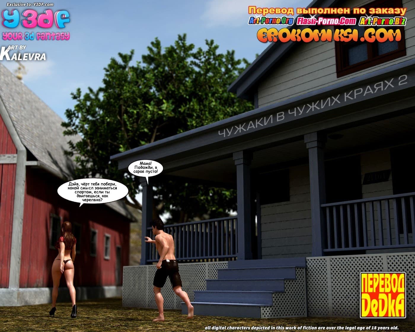 Порно комикс Чужаки в чужих краях 2 часть начинается с того, что, мистер Пит уединившись с Джуной в ванной и, вывалив ей перед лицом свой большой член на обозрение, мужчина задевает возбужденную девушку за живое и легко добивается ее расположения. Но, еще более интригующие события нас ждут в амбаре! Туда Джорджия позвала своего старшего сына. Скажем так, что истинные мотивы супружеской пары не понятны, но уже сейчас становится ясно, что у взрослой и очень сексуальной мамаши на уме зреют далеко не ангельские планы…