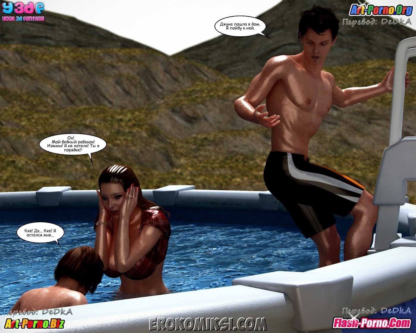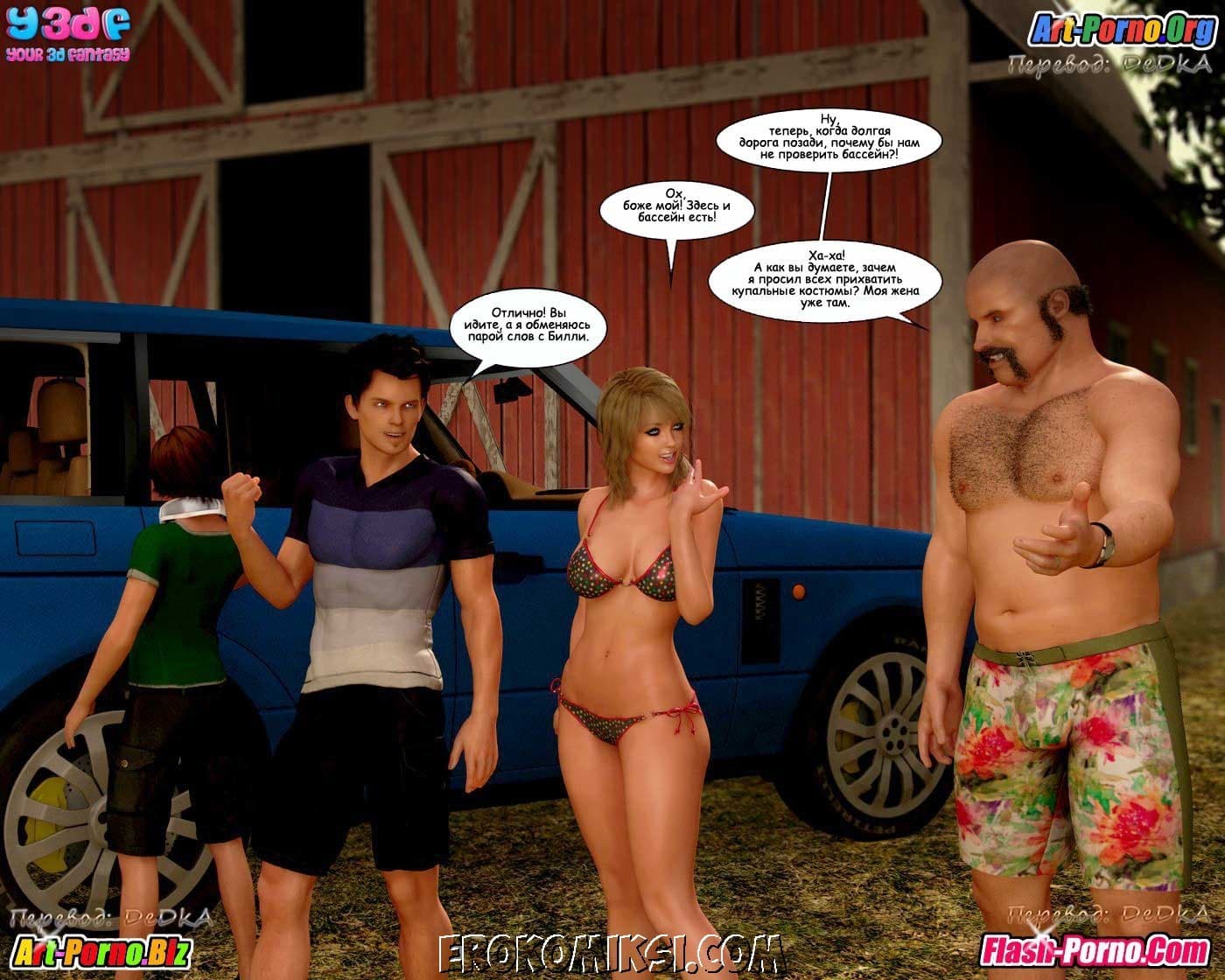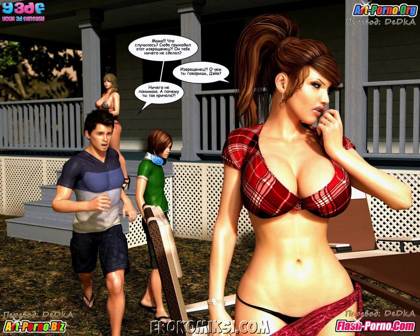 Порно комикс Чужаки в чужих краях расскажет историю о том, как в честь помолвки старшего сына, папаша приобрел для него и его невесты дом, в достаточно отдалённом и очень странном месте. Странным кажется и, что когда всё семейство приехало осмотреть новый дом, то оказалось, что у главы семьи и его зрелой женушки есть ещё одна, очень скрытая и главная цель этой поездки. В общем, довольно тёмная история…