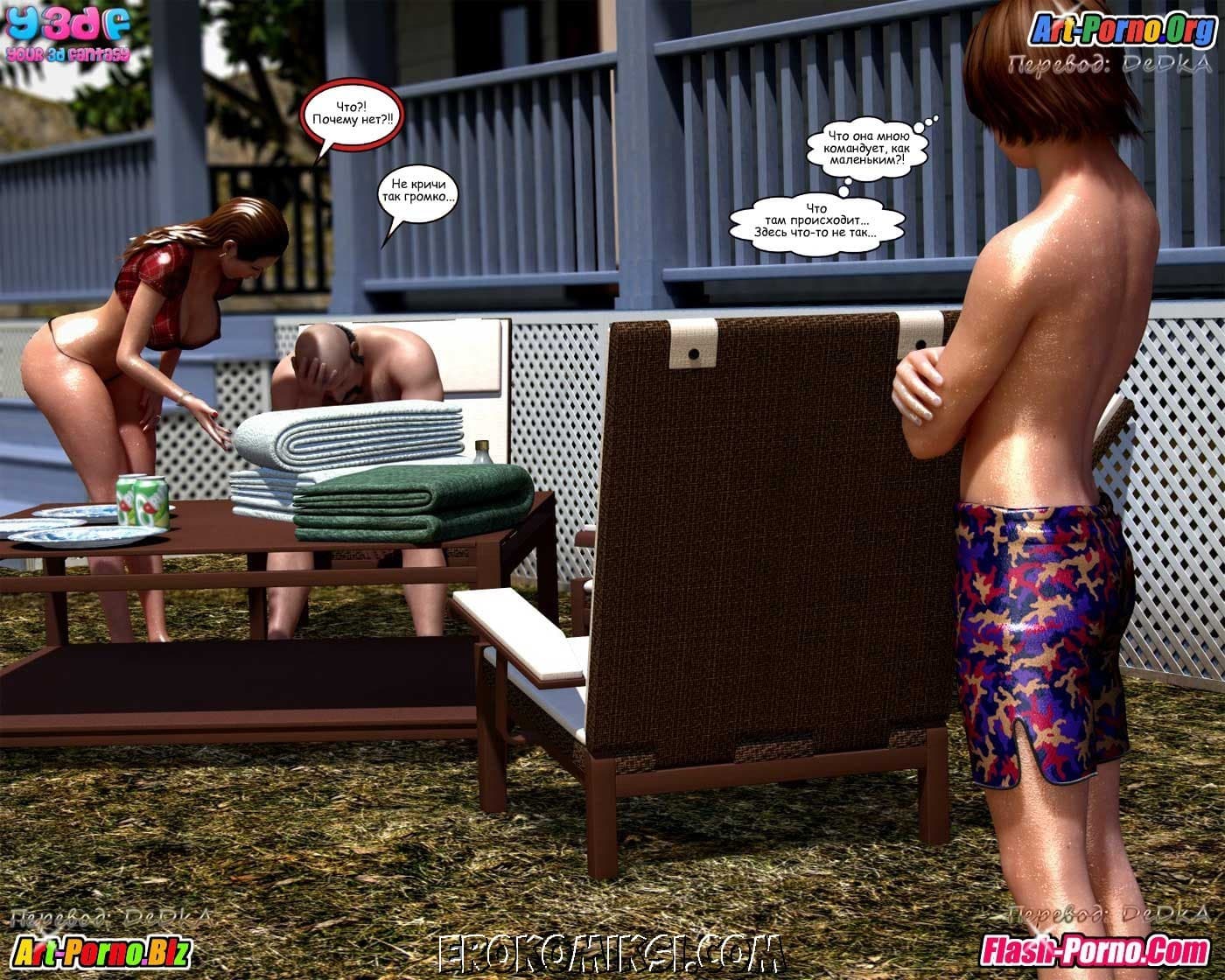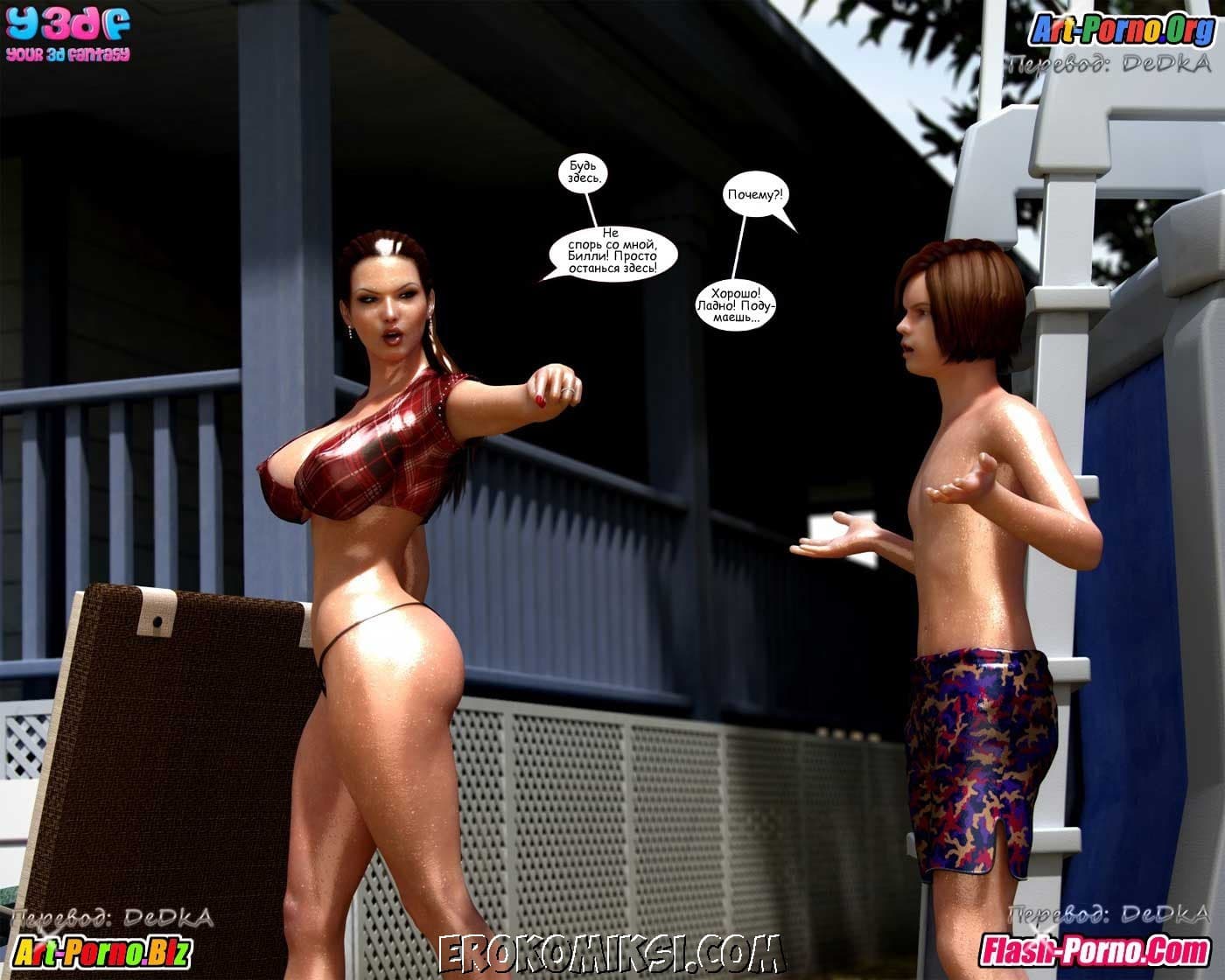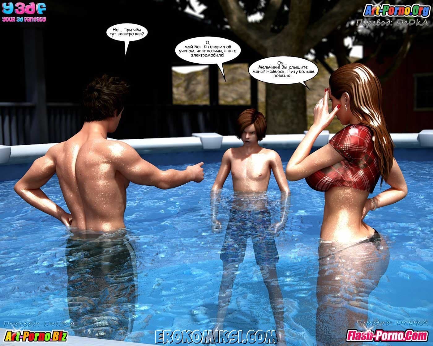 Порно комикс Чужаки в чужих краях расскажет историю о том, как в честь помолвки старшего сына, папаша приобрел для него и его невесты дом, в достаточно отдалённом и очень странном месте. Странным кажется и, что когда всё семейство приехало осмотреть новый дом, то оказалось, что у главы семьи и его зрелой женушки есть ещё одна, очень скрытая и главная цель этой поездки. В общем, довольно тёмная история…