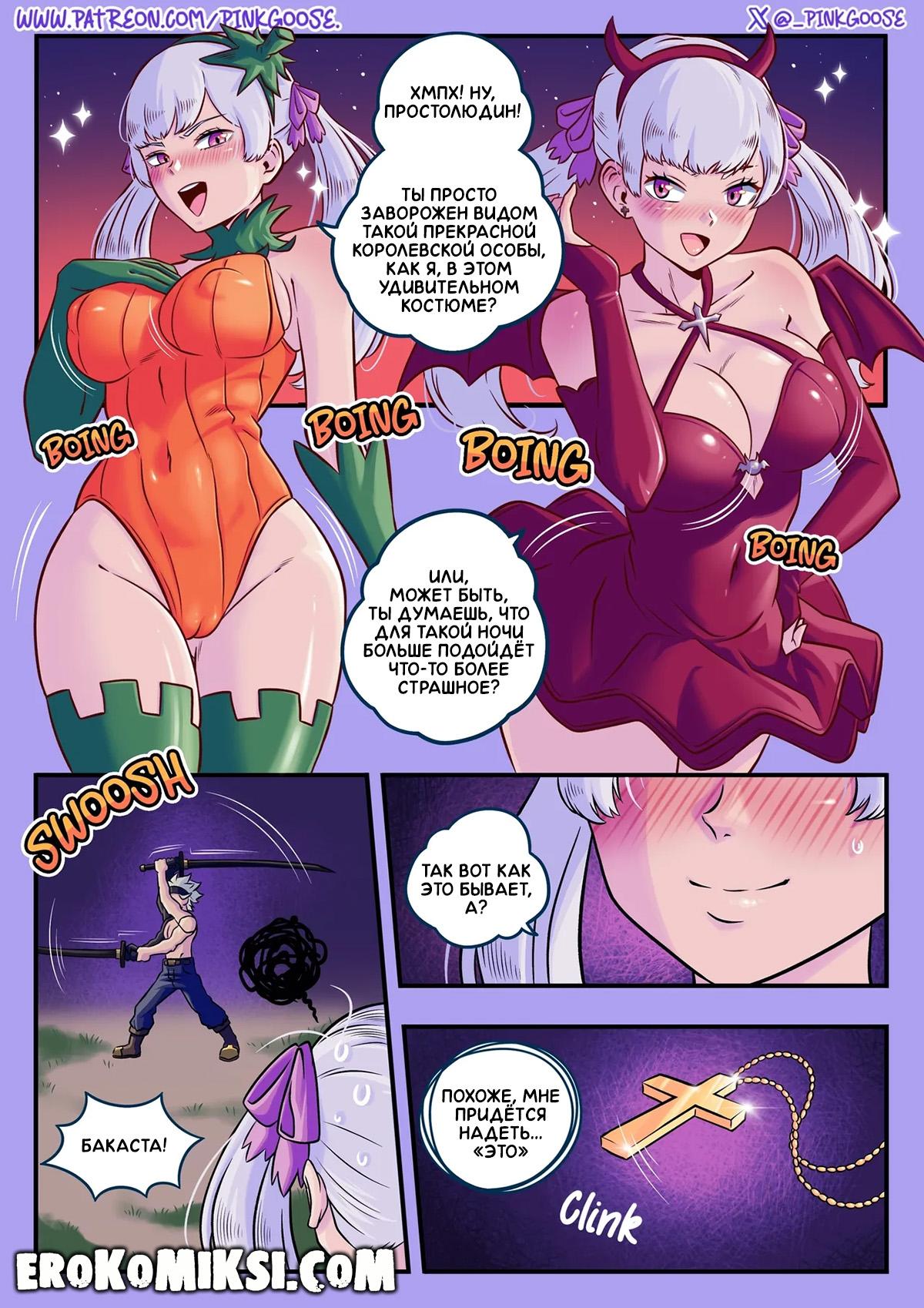 Порно комикс Чёрный Клевер. Горячий маскарад. Увидев тренирующегося Бакасту, Ноэль решила над ним поиздеваться и начала наряжаться в разные костюмы, однако, она не учла того момента, что все костюмы были довольно откровенными и Бакаста сразу же возбудился на красавицу и как следует её оттрахал…