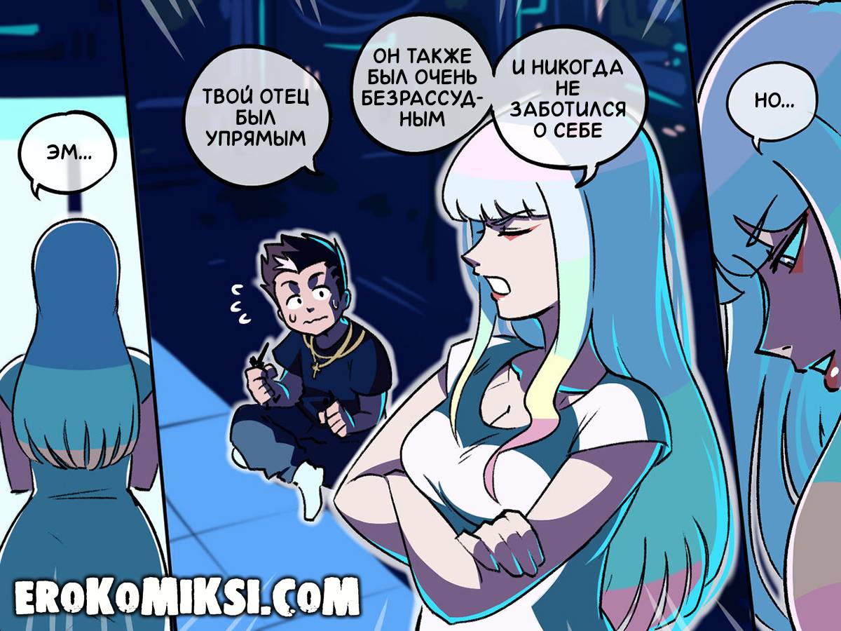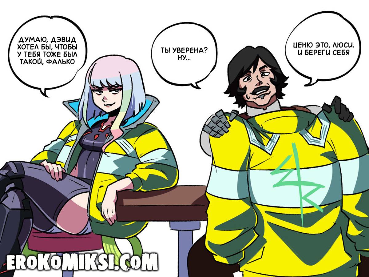 Порно комикс Cyberpunk 2077. Люси Мартинес. Люсина Кушинада очень любила Дэвида Мартинеса и потеряла с ним девственность, но Дэвид вынужден был отправиться на межгалактическое задание, и Люсина, чтобы показать свою преданность любимому, зовёт себя Люси Мартинес…