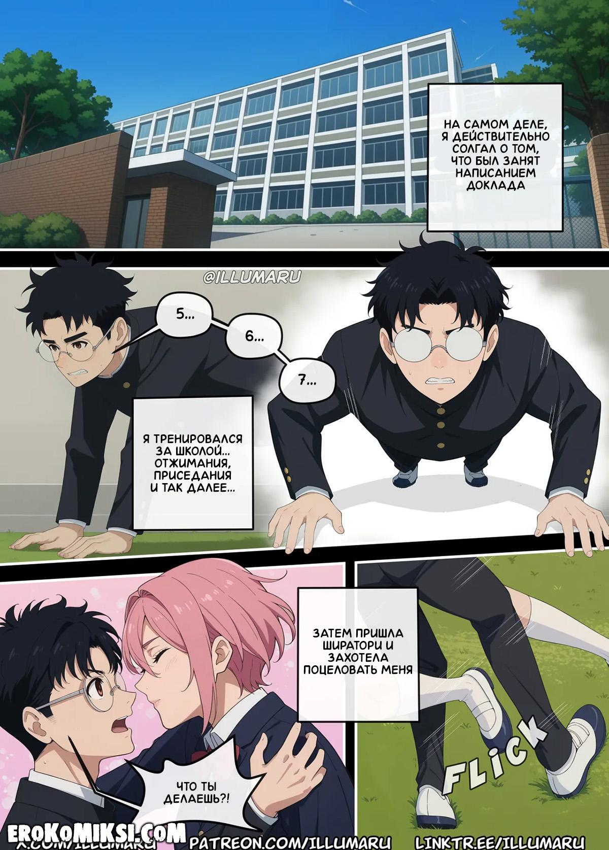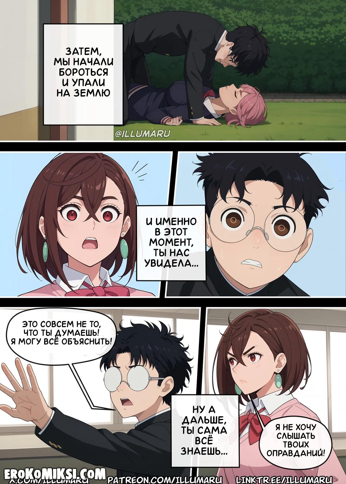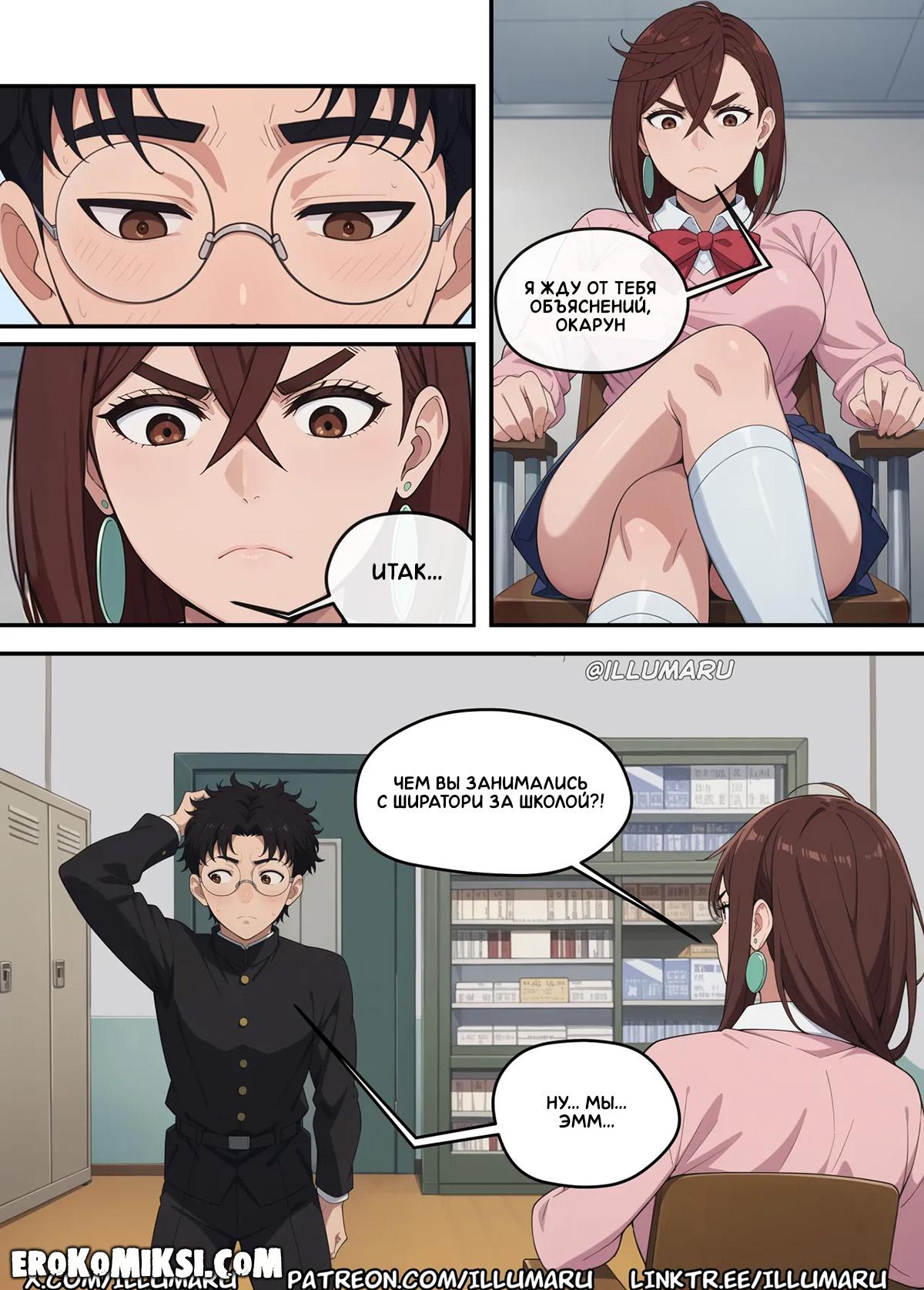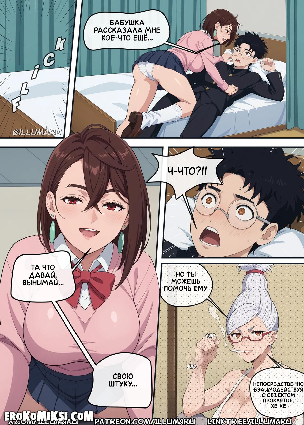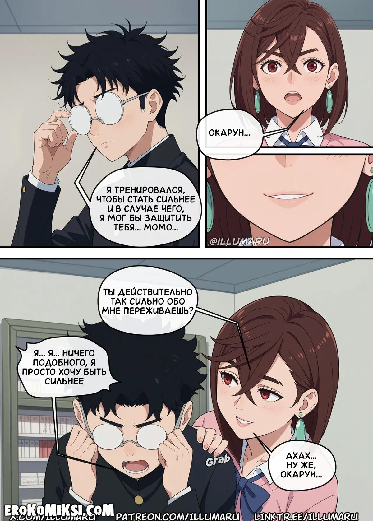 Порно комикс DanDaDan. Кто получит Окаруна? Момо спалила, как Окарун обнимается с Айрой, и требует от него объяснений, хотя прекрасно знает, что это была лишь случайность. Видя, как Окарун разнервничался, Момо решает его успокоить и достав из штанов его огромный член, принимается его отсасывать, и в этот момент появляется Айра…