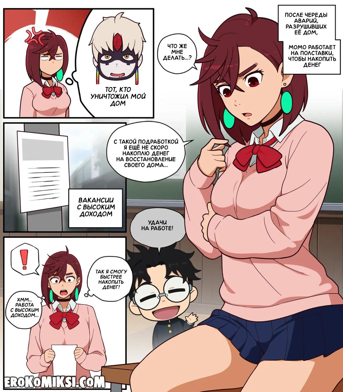 Порно комикс DanDaDan. Подработка Момо. Из-за нехватки денег, Момо вынуждена устроиться на работу шлюхой, и после того, как он получила огромную сумму денег за первый же рабочий день, то поняла, что своей киской можно сколотить неплохое состояние…