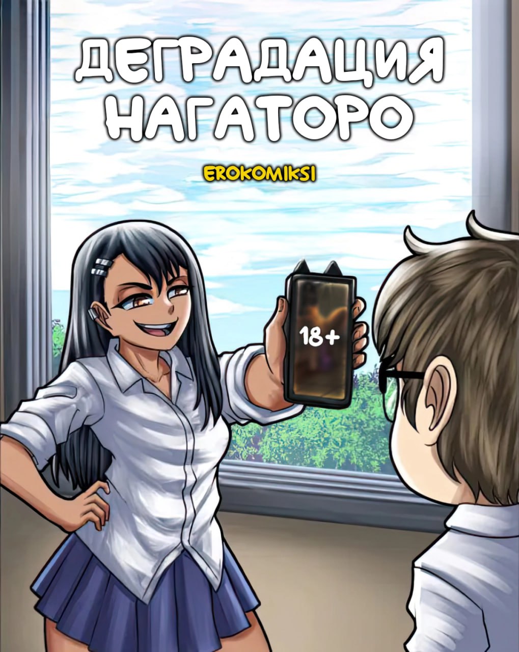 Порно комикс Деградация Нагаторо. Нагатаро хотела показать своему другу из школы фотку, но случайно показала не ту… дважды…