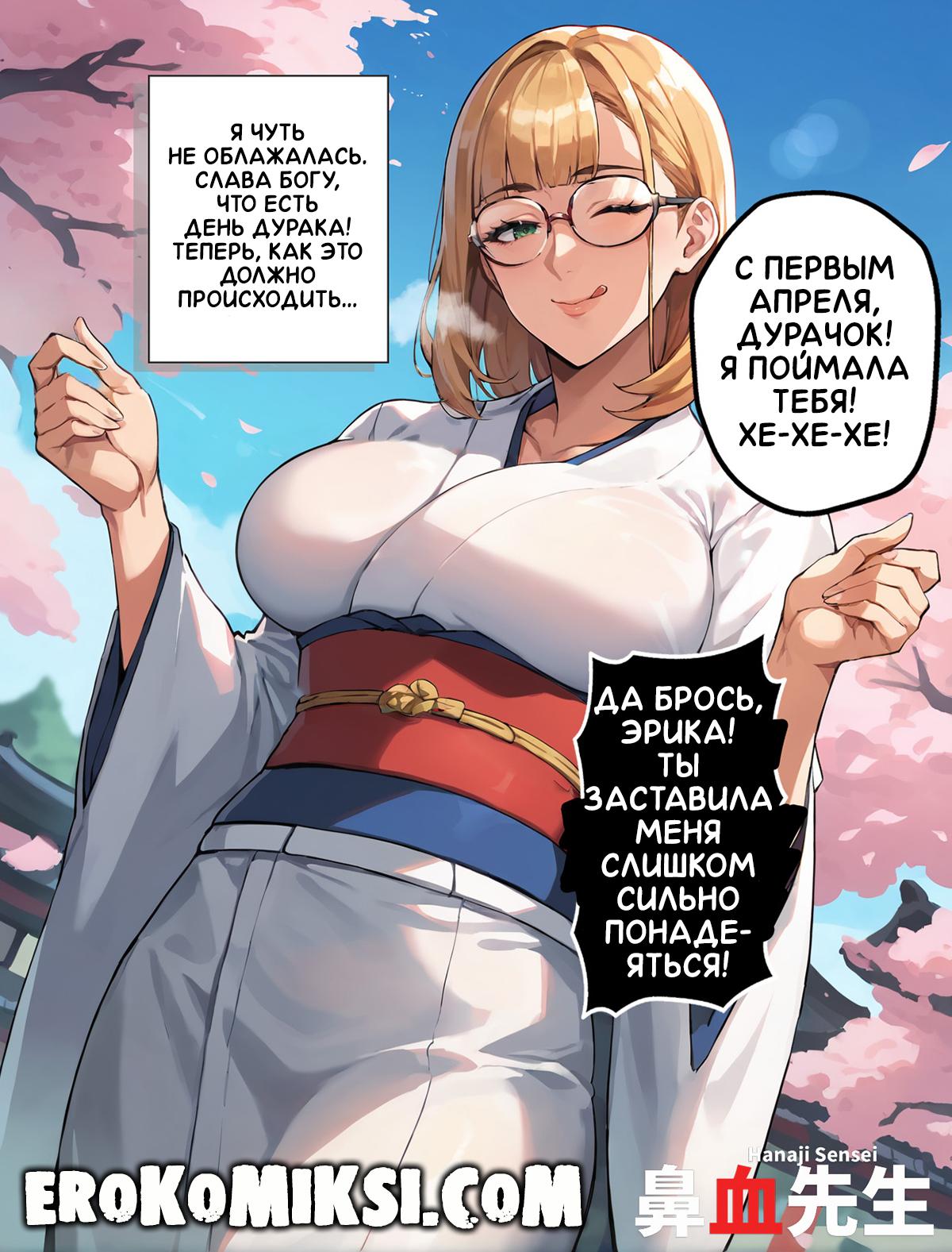 Порно комикс День Дурака. Спустя пару недель, после того, как Эрика переспала со своим начальником, она узнала, что беременна и решила сообщить мужу, что у них будет ребёнок. Муженёк сначала обрадовался, но потом вспомнил, что они уже несколько месяцев не занимались сексом. На спасение Эрики пришёл тот факт, что сегодня первое апреля и это была шутка. Но чтобы муж поверил, что ребёнок его, она решила поскорее снять трусики и дать мужу трахнуть её киску…
