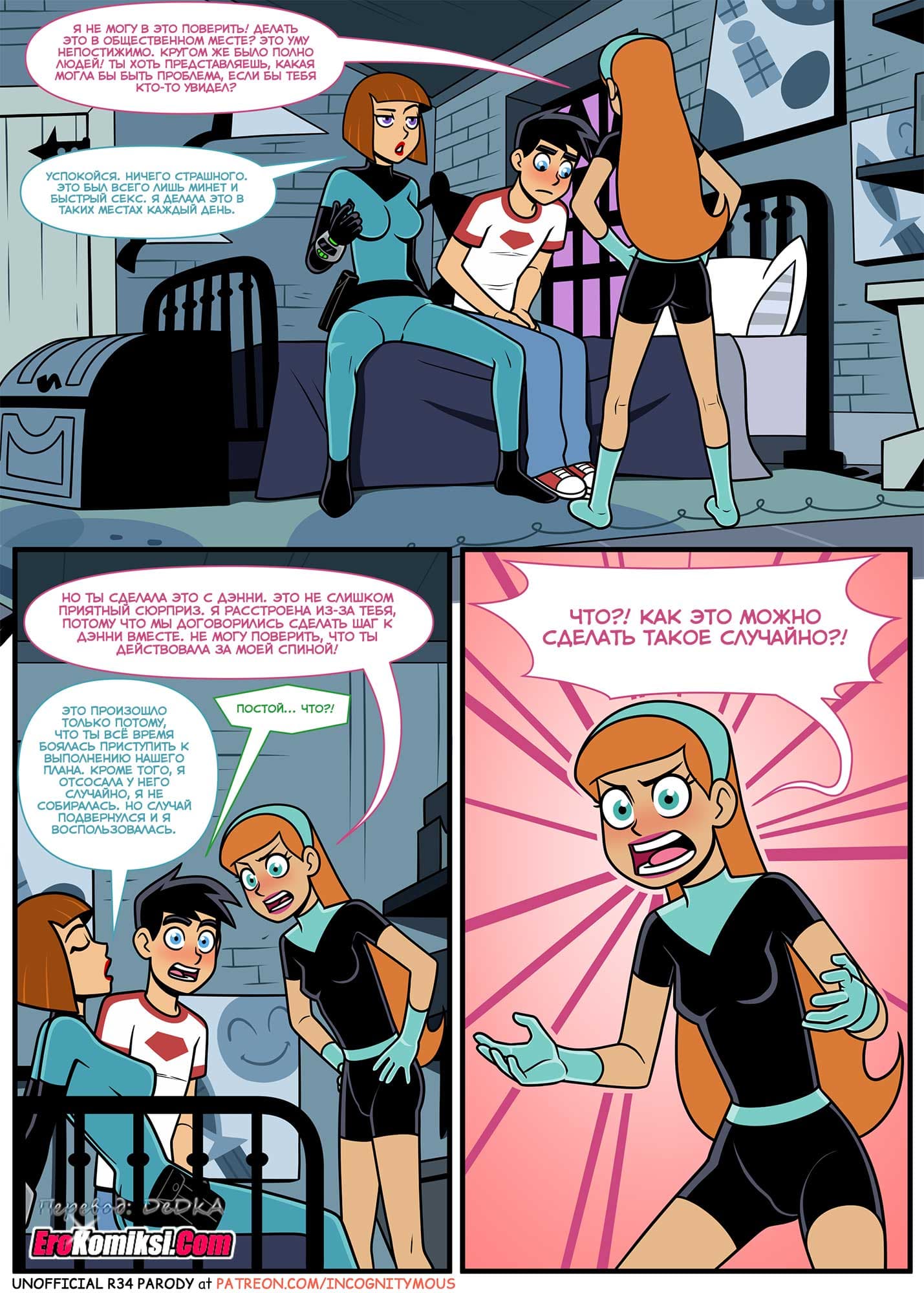 Порно комикс Дэнни-призрак в погоне за славой. Часть 2. Две подружки едва не поссорились, когда одна из них узнала, что другая за спиной у неё отсосала у Дэнни. Но, когда выяснилось, что это был не настоящий Дэнни, а лишь его призрак, то это существенно изменило ситуацию…