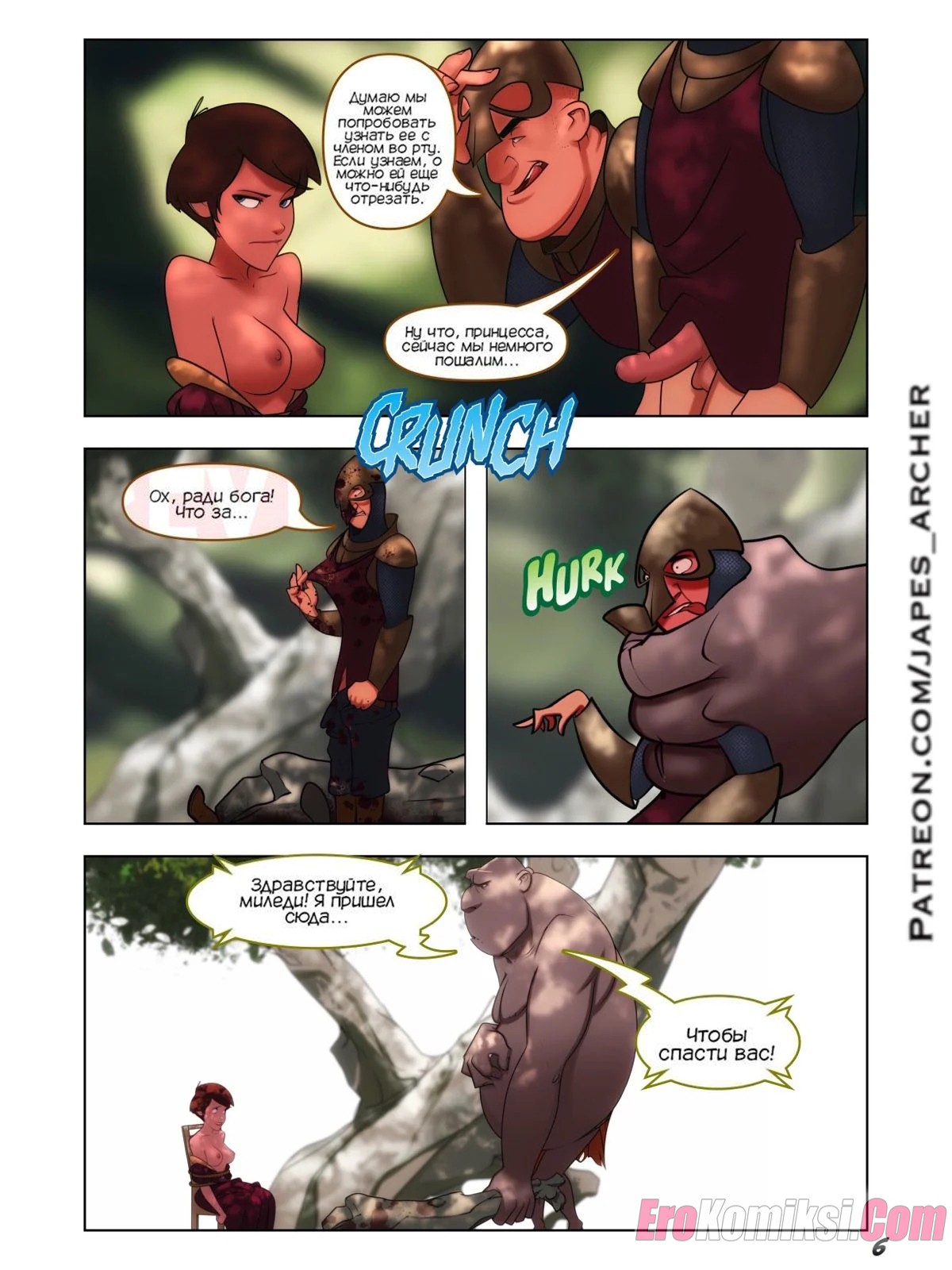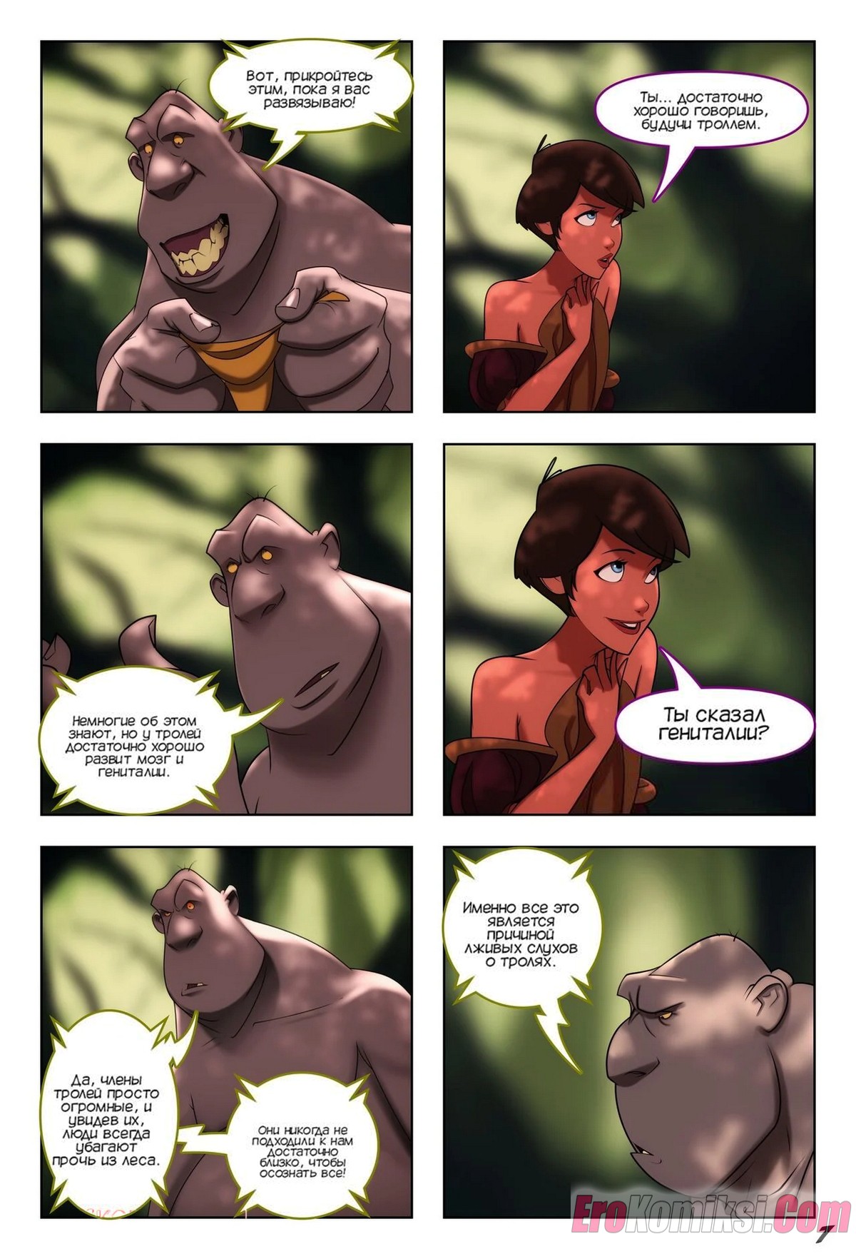 Порно комикс Дерзкий. Часть 5. Jackanapes. Japes Горячую сисястую брюнетку спас огромный тролль и девушка решила увидеть в деле его огромный хуй. Тролль долго пытался отговорить девушку, но в итоге выебал ее и обкончал с ног до головы.
