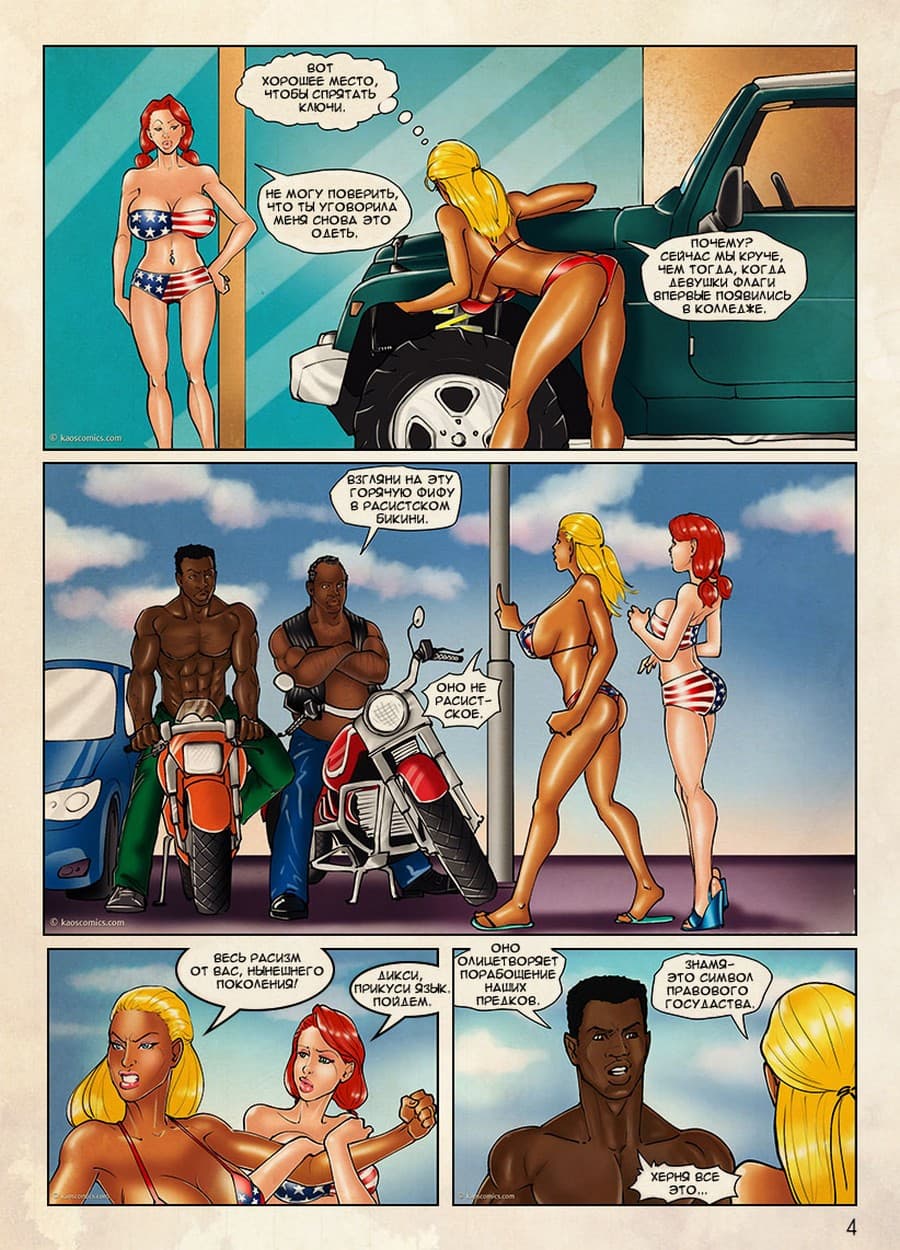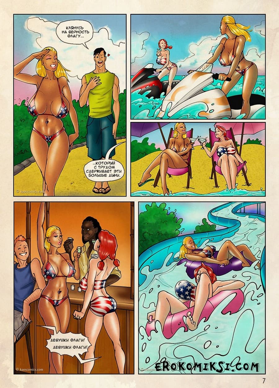 Представляем вашему вниманию новые порно комиксы на русском, в которых вы познакомитесь с очень красивыми и, естественно аппетитными девушками флаги. Почему флаги? Да, потому что они носили купальники цвета флага, что очень шикарно смотрелось на их огромных грудях и упругих попках. Только, вот не все разделяли их мнение по поводу окраски их вызывающих бикини, и за это героиням даже разбили автомобиль и украли все деньги, даже мужьям сексуальных леди не удалось решить их проблемы. Поэтому им пришлось самим выкручиваться, но что из этого вышло?