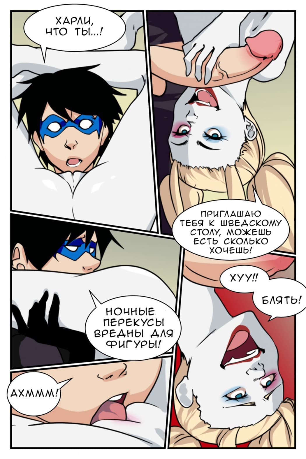 Порно пародия на тему «batman» расскажет вам о том, как Дику Грейсону (в прошлом Ричарду) пришлось присматривать за сексуальной Харли Квинн, что вначале едва не поставило Дика (ну и имечко, прости Господи) на грань жизни и смерти. Однако он отделался лёгким испугом. Что же случилось? Прочтите сами!
