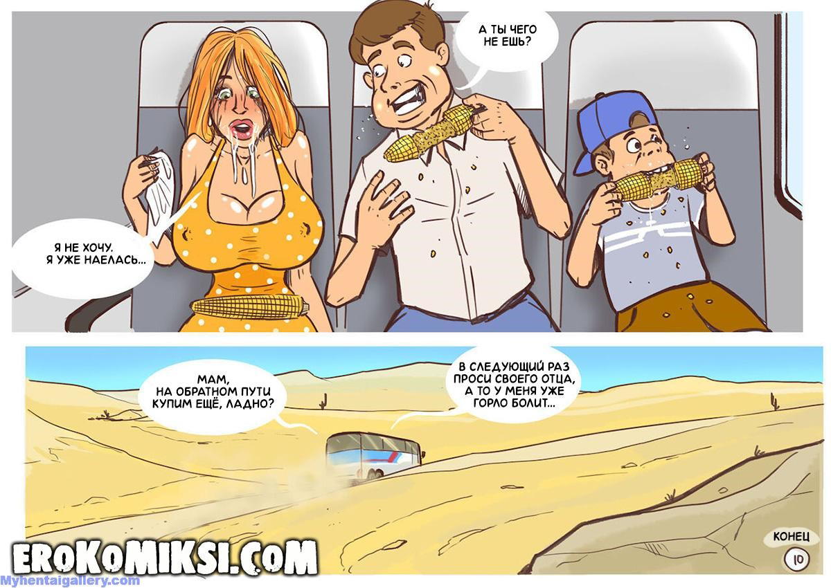 Порно комикс Добро пожаловать в Мексику, сука! Во время поездки в Мексику, сынок захотел кукурузу, и его мама пошла в ближайший киоск, чтобы удовлетворить прихоть сыночка. Увидев сексапильную мамашу, продавец вытащил из штанов свою «кукурузу» и как следует накормил мамашку…