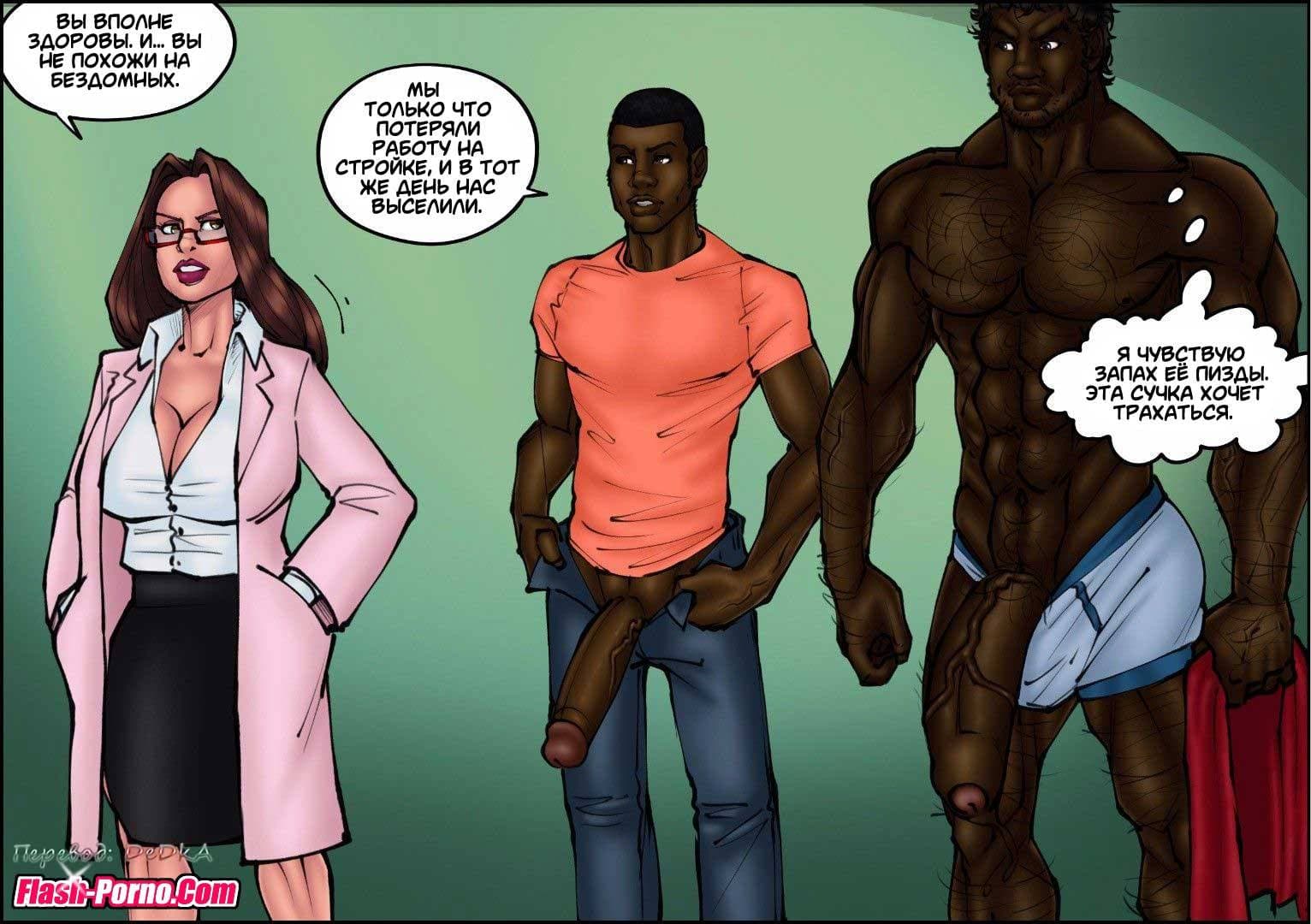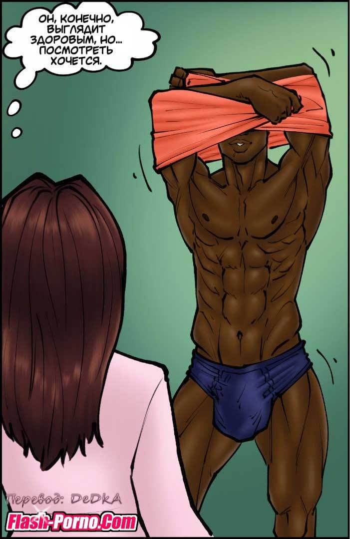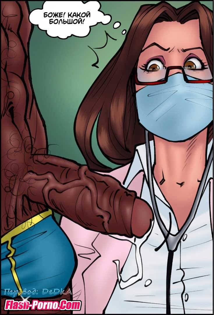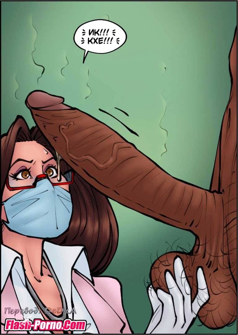 Эротические комиксы для взрослых познакомят вас с новой историей, речь в которой пойдет о том, как муж уговорил свою благоверную, работающую врачом провести бесплатный медицинский осмотр в качестве благотворительности для бомжей в приюте бездомных. Все это нужно было, чтобы он получил дополнительные налоговые вычеты. Женщина довольно брезгливо отнеслась к просьбе мужа проводить осмотр бомжей, но все же согласилась. Когда она начала принимать пациентов из приюта, то с большим удивлением заметила, что пенисы чернокожих мужчин были гораздо больше, чем у белых. И это обстоятельство произвело на нее огромное впечатление!