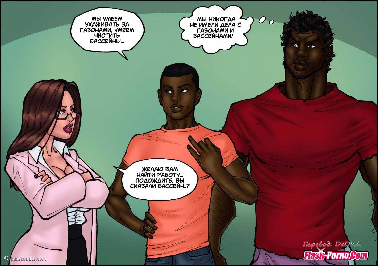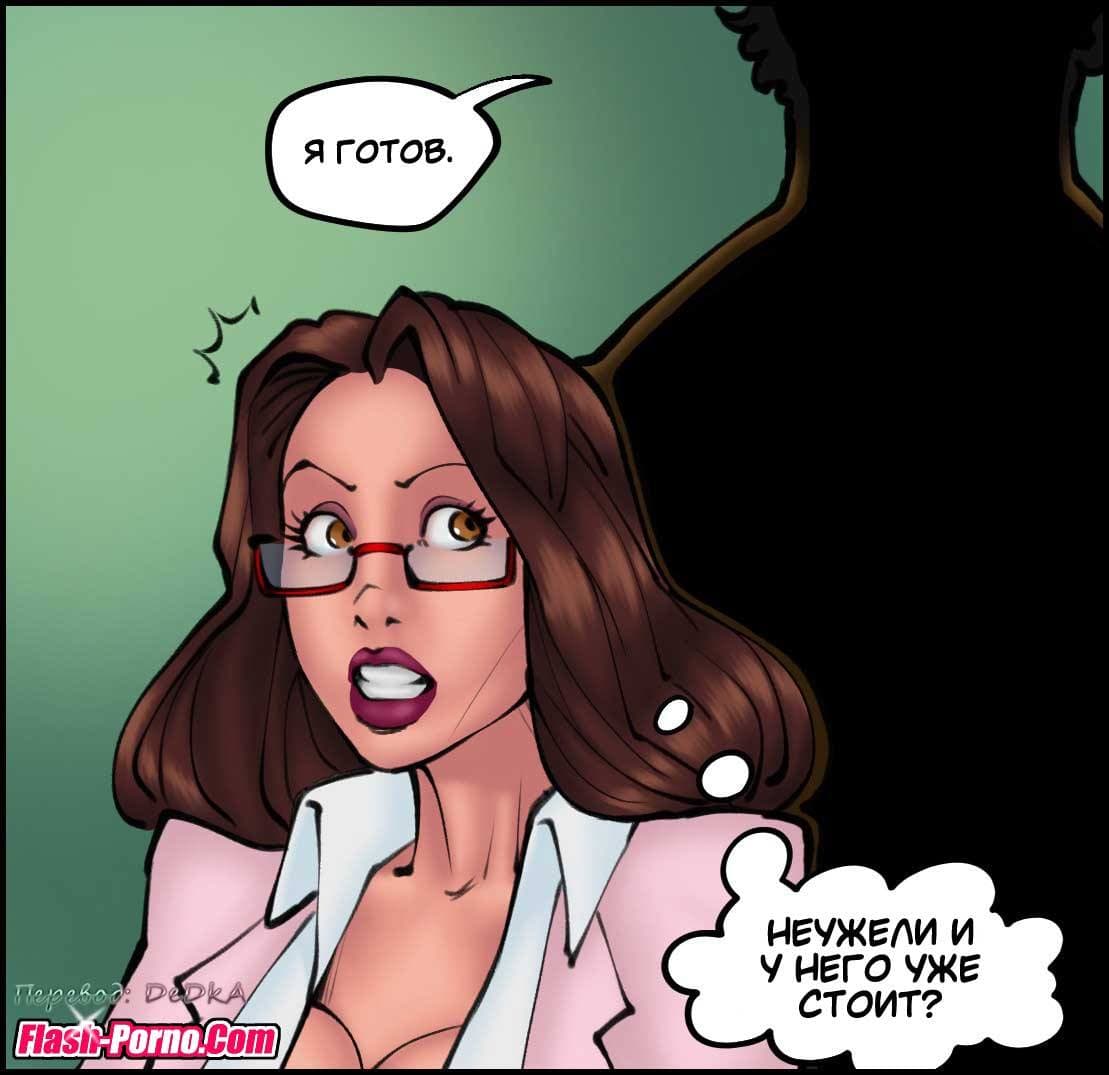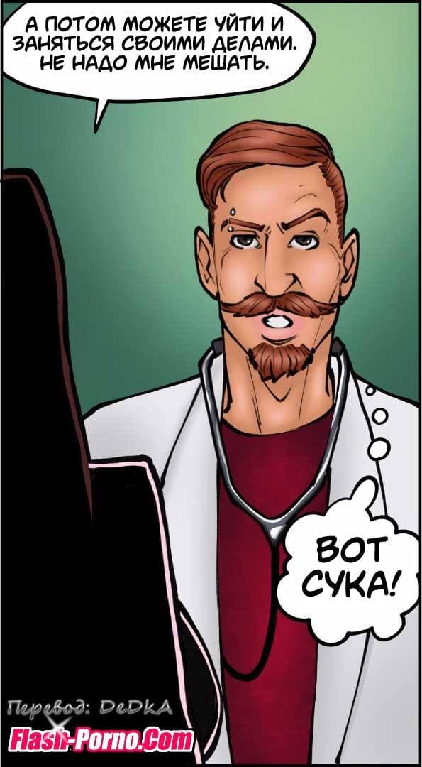 Эротические комиксы для взрослых познакомят вас с новой историей, речь в которой пойдет о том, как муж уговорил свою благоверную, работающую врачом провести бесплатный медицинский осмотр в качестве благотворительности для бомжей в приюте бездомных. Все это нужно было, чтобы он получил дополнительные налоговые вычеты. Женщина довольно брезгливо отнеслась к просьбе мужа проводить осмотр бомжей, но все же согласилась. Когда она начала принимать пациентов из приюта, то с большим удивлением заметила, что пенисы чернокожих мужчин были гораздо больше, чем у белых. И это обстоятельство произвело на нее огромное впечатление!