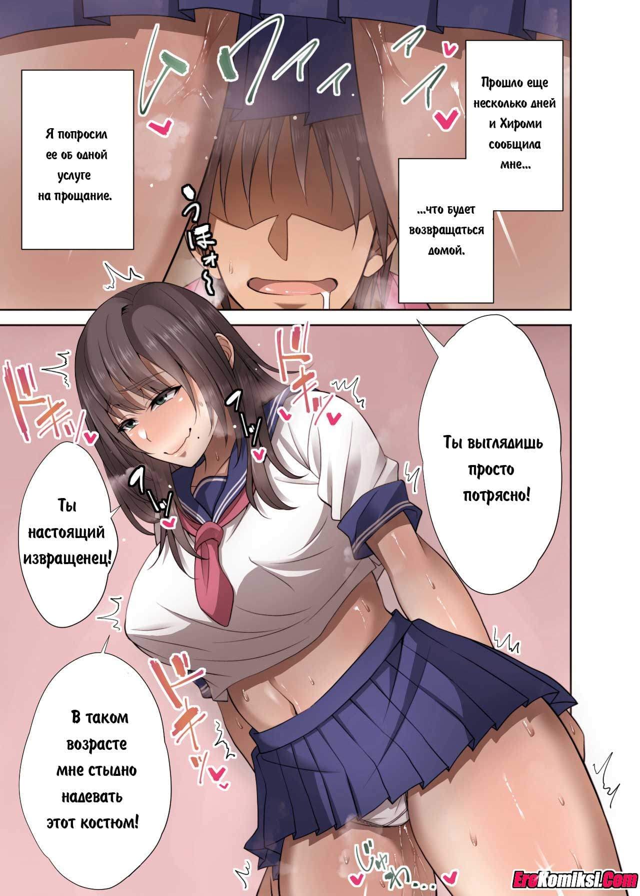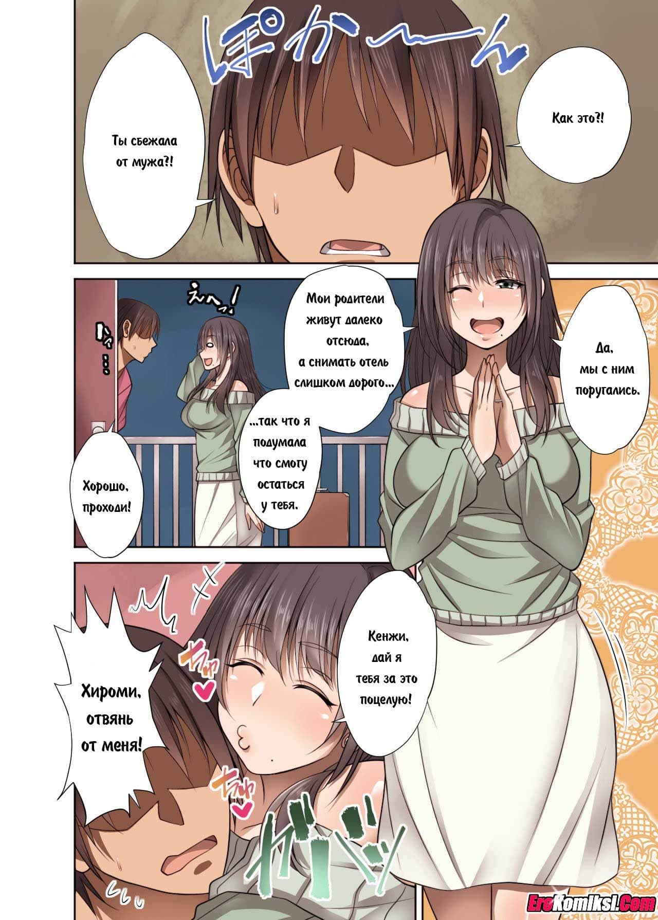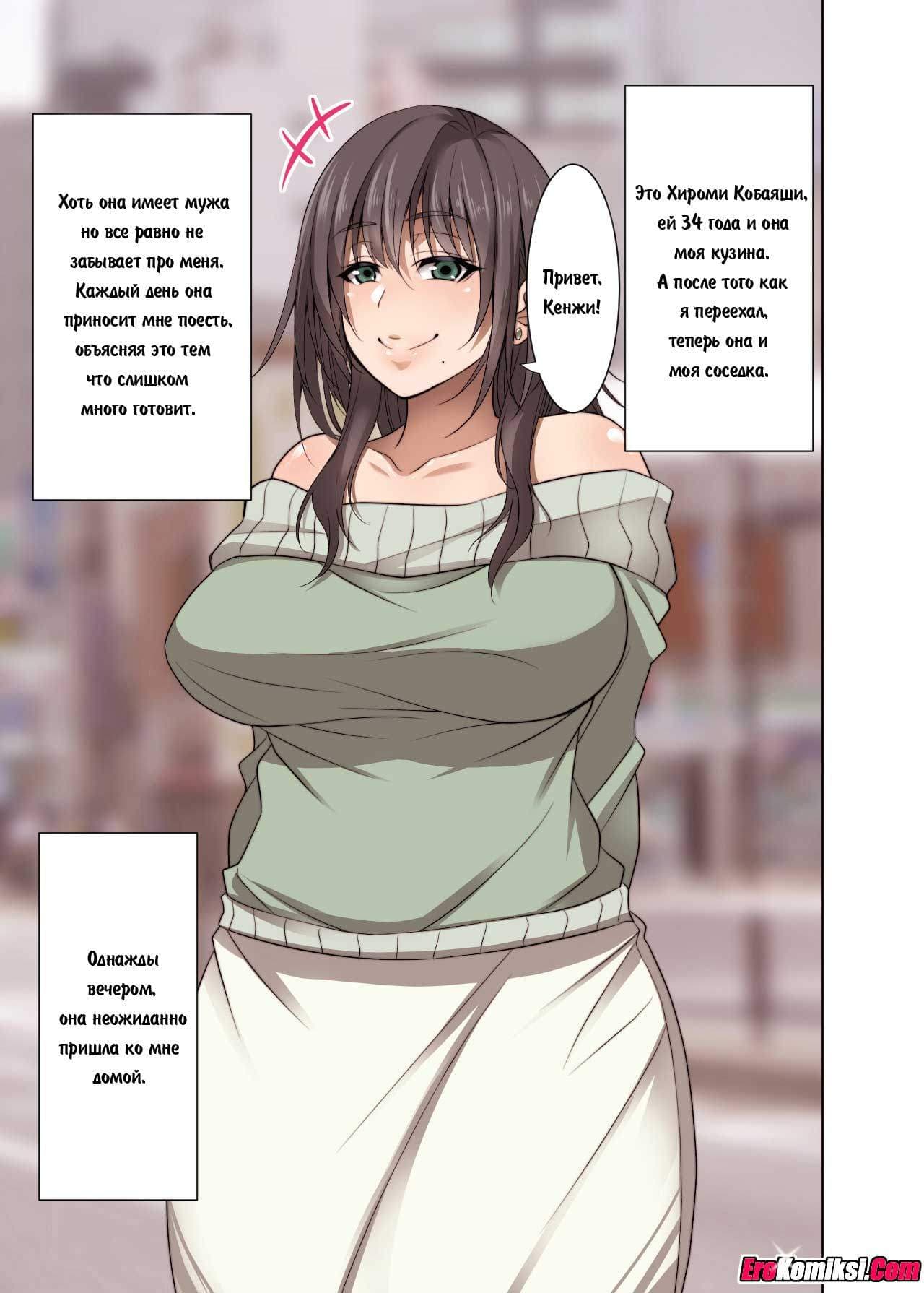 После переезда Кенжи стал жить по соседству со своей 34-летней замужней кузиной, Хироми Кабаяши. Заботливая и хозяйственная Хироми так много готовила, что еды хватало и для Кенжи, которому она и приносила каждый день что-нибудь поесть. Но однажды она пришла к Кенжи не днём, а вечером и без еды. Она сказала, что узнала о том, что муж изменяет ей, и ушла от него. Хироми попросилась пожить у Кенжи некоторое время. Кенжи, конечно, разрешил. Позже вечером, когда Кенжи принимал ванну, Хироми зашла к нему в ванную комнату, чтобы «потереть ему спинку» в благодарность за то, что он пустил её к себе пожить…