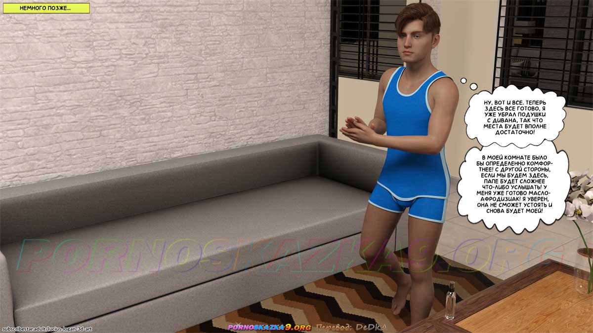 Порно комикс Домашняя работа. Часть 6. Семья вернулась домой из ресторана. Отец Калела сразу стал жаловаться на то, что он устал и хочет принять душ и лечь спать. То же самое сказала и Кэтлин, после чего Калел предложил ей после душа зайти к нему в комнату, где он сделает ей превосходный расслабляющий массаж перед сном…