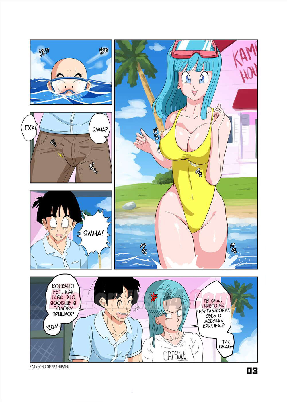 Порно комикс Dragon Ball Z. Марон нападает. Marons Attack. PafuPafu Один озабоченный парень стал засматривать на сексапильную красотку с упругими сиськами на пляже. Вскоре он захотел подсмотреть за ней, в то время, как она купалась в душе. Но, наблюдательная девушка его увидела за подглядыванием, но не стала устраивать скандал, а просто решила ублажить похотливца!