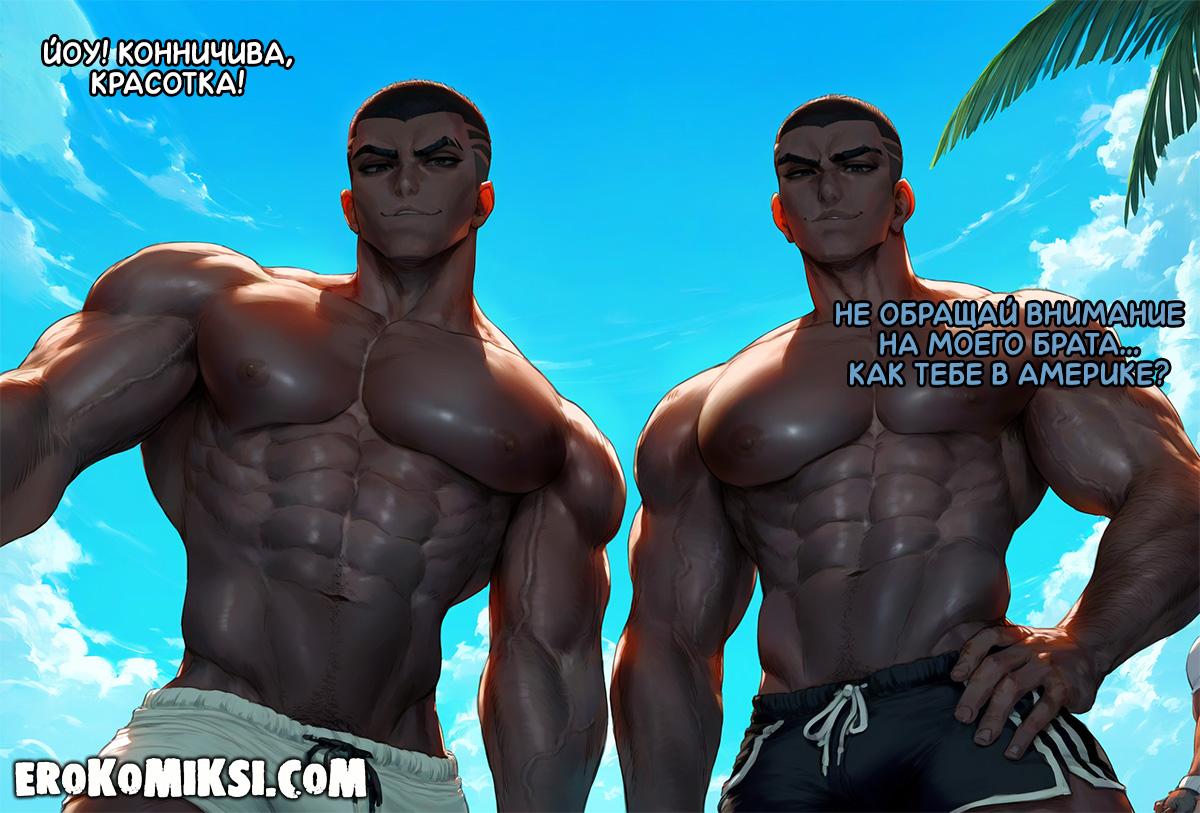 Порно комикс DragonBall Z. Поездка в Америку. Андроид вместе с мужем отправились в отпуск в Америку, и первым делом пошли на пляж, где на красотку сразу же обратили внимание 2 нигера и предложили провести ей экскурсию, на что она с радостью согласилась, и как итог, парни как следует оттрахали сисястую Андроид своими огромными членами…